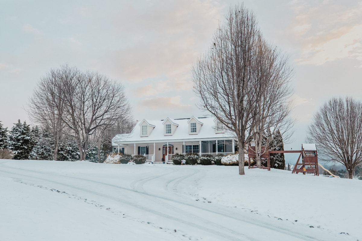 Tämä viehättävä majatalo on upean yksityinen, mutta ei eristäytynyt, ja se päivitettiin kokonaan vuonna 2019. Nauti rauhasta ja hiljaisuudesta. Mene kävelylle tai pyöräile yli 28 eekkerin alueella tai viehättävillä maaseututeillä. 2,5 mailin päässä on Robertson-järvi aktiviteetteja varten. Istu myös kuistilla! Lumisena iltana voit nauttia puutakasta. (Jätämme usein takan valmiiksi sytytettäväksi. Myös kaasulämmitys). Mukavuuksia ovat täysin varustettu keittiö, pyykinpesukone/kuivausrumpu, pelit ja kirjat. DirecTv olohuoneessa ja makuuhuoneessa.