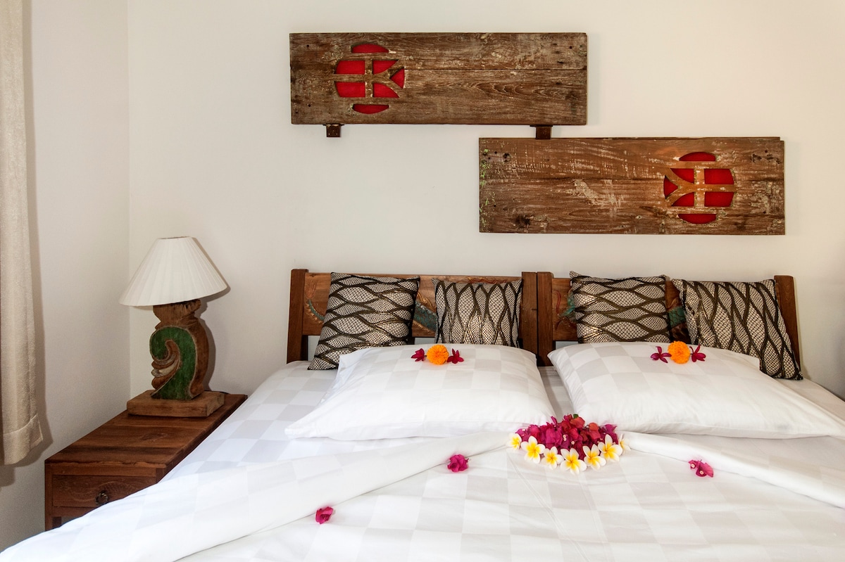 Uppoudu perinteiseen muotoiluun ja mukavuuteen, jossa on puhtaat liinavaatteet ja pyyhkeet, ilmastointi ja mukavat vuoteet, jotka tarjoavat täydelliset yöunet. Jokaisessa huoneessa on kaappi ja pyyheteline sekä yksityinen ulkoistuinalue rentoutumista varten. Ota nopea kahden minuutin kävelymatka rannalle, josta voit nähdä leikkisiä delfiinejä tai ruokailla herkullisissa lähellä sijaitsevissa ravintoloissa ja Warungsissa. Älä jätä väliin läheisiä nähtävyyksiä, kuten henkeäsalpaavia vesiputouksia ja upeita temppeleitä.