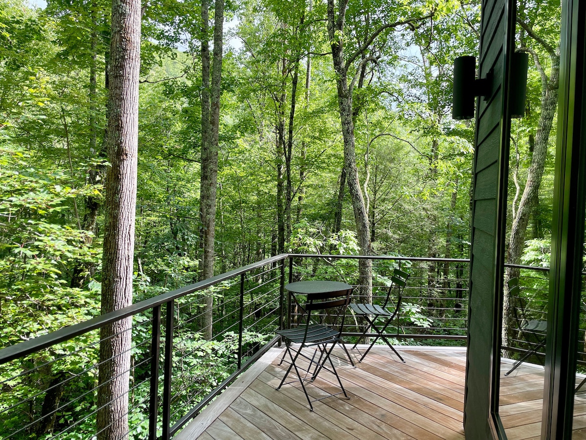 Tervetuloa The Understoryyn. Tämä romanttinen käsintehty pieni koti sijaitsee syvällä alppiruusuilla peitetyissä metsissä ja tarjoaa sinulle rauhallisen ja ikimuistoisen majoituksen vain 15 minuutin päässä sekä Ashevillestä että Black Mountainista. Mukavaan asuintilaan kuuluu sadesuihku, king-size-vuode parvisella nukkuma-alueella, kodikas puuhella ja täysin varustettu keittiö. Mökin ympärillä on suuri terassi, jossa on pöytä ja tuolit, ylellinen kylpyamme ja patio, jossa on nuotiopaikka ja propaanigrilli.