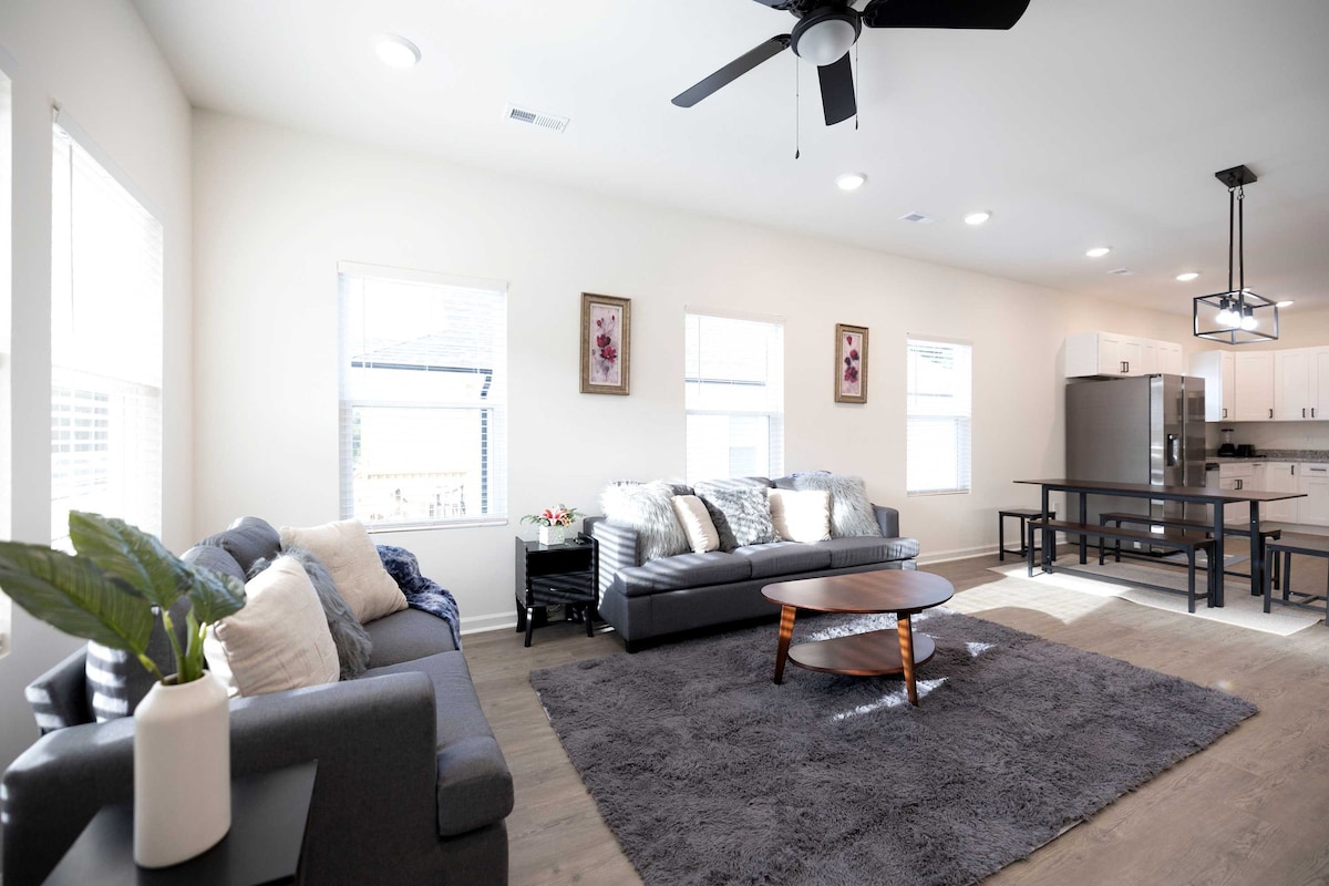 Nauti tyylikkäästä kokemuksesta tässä keskeisellä paikalla sijaitsevassa Airbnb: ssä. Meillä on kaikki, mitä tarvitset tässä 2 bd/1 ba: n kompakti talossa. Tämä noin 75 neliömetrin talo sijaitsee rauhallisella asuinalueella, josta on näkymä puistoon, jossa on valtavia tammeja. Tarjolla on kaksi pientä makuuhuonetta, joissa molemmissa on queen-size-vuode. Suuret kaapit jokaisessa vaatteiden ripustamista/säilytystä varten. Talossa on suuret ikkunat, joissa on runsaasti luonnonvaloa. Olohuoneessa on istuimet ja 40-tuumainen taulu-tv. Tule majoittumaan "oikeaan paikkaan"! Kiitos.