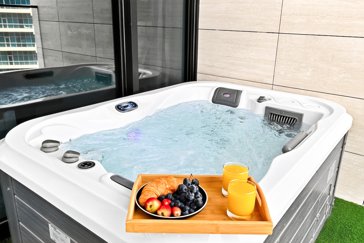 Tervetuloa luksushuoneistoon Business Bayn sydämessä. Siellä on harvinaiset näkymät kanavalle ja oma poreallas parvekkeella – täydellinen rentoutumiseen Dubaissa vietetyn päivän jälkeen. Miksi pidät siitä: - Upeat näkymät kanavalle ja kaupungin taivaanrantaan yksityiseltä parvekkeeltasi - Yksityinen poreallas – yksinomaan huoneistossasi - Täysin varustettu keittiö + älytelevisio + nopea wifi – Queen-vuode hotellilaatuisilla vuodevaatteilla - Ilmainen pääsy uima-altaalle, kuntosalille ja turvalliseen pysäköintiin