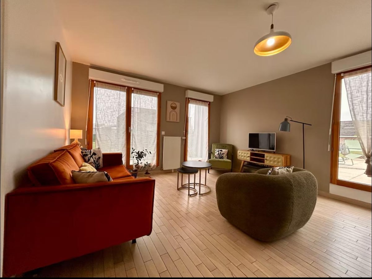 Bienvenue dans ce charmant appartement rénové de 40 m² situé dans une résidence calme au cœur du centre-ville disposant d’une chambre, d’un salon avec couchage, d’une cuisine équipée, d’une salle de bain moderne et tout le confort nécessaire pour un séjour agréable. Idéal pour les couples, familles ou voyageurs d’affaires, il peut accueillir jusqu’à 5 personnes. Vous apprécierez : jardin privatif,parking sécurisé gratuit,proximité avec Paris, l’aéroport CDG, Disneyland et le Parc Astérix
