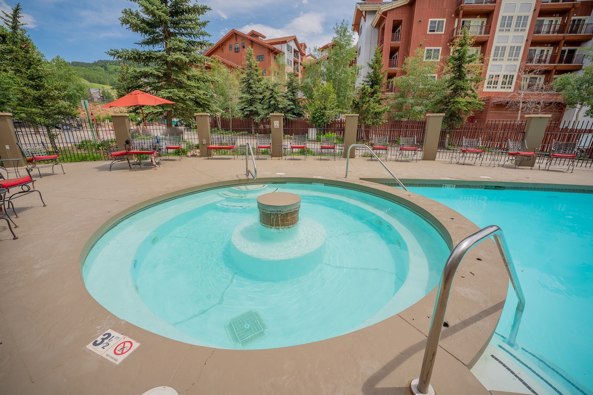 Hiihtämään ulko-ovelta, muutaman askeleen päässä Base Villagesta, uima-allas!