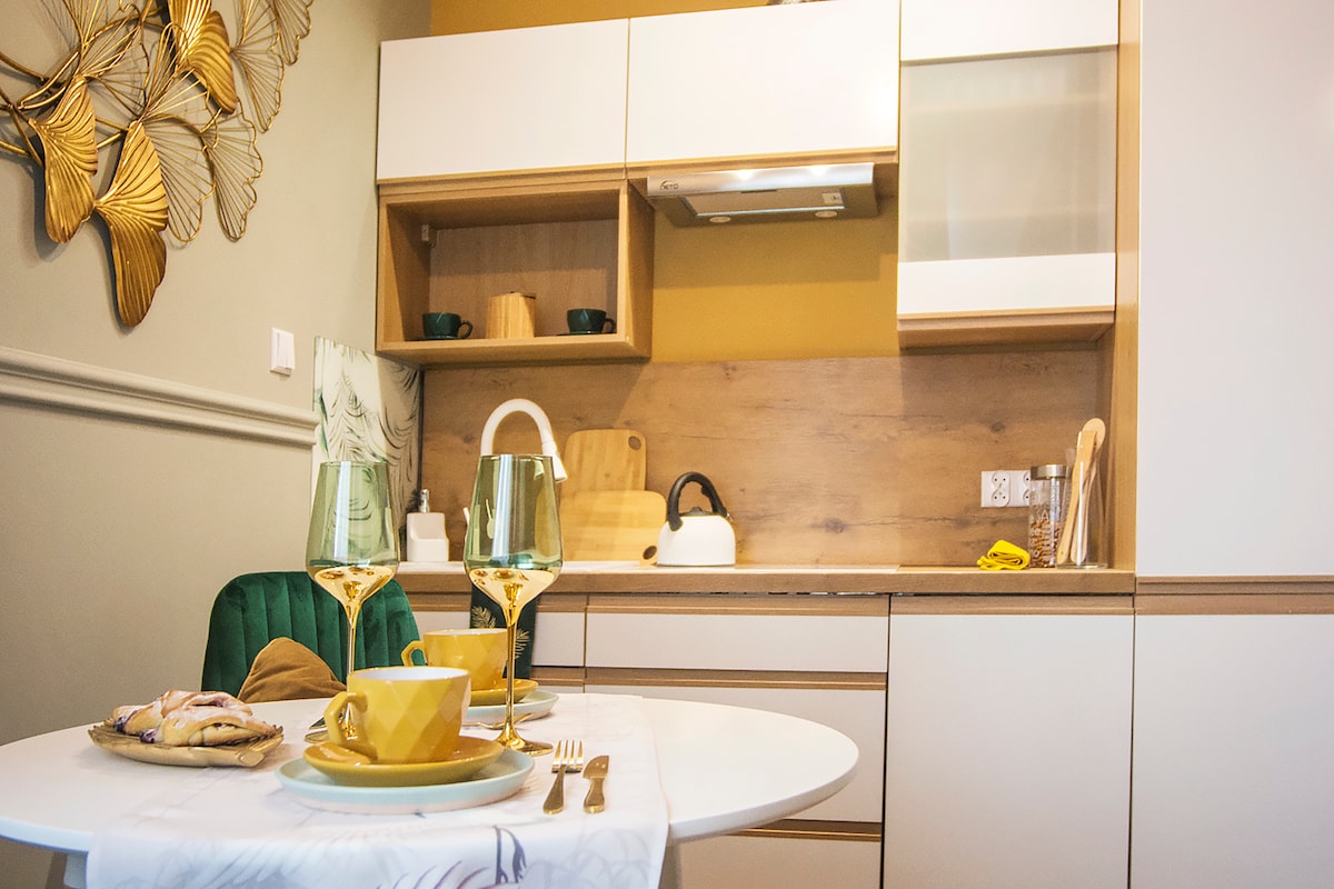 💎 🇫🇷 Tunne Pariisin tunnelma! 🥂 Nauti takasta, ilmastoinnista ❄️ 🌡️, levysoittimesta 💿, ensiluokkaisesta Marshall-äänentoistolaitteesta 🎼 ja NOPEASTA Wi-Fistä (mukavuus ja itsenäisyys taattu). Tämä on ainutlaatuinen kahden huoneen Art Déco -retriitti, joka sopii täydellisesti ylelliselle pitkälle viikonlopulle tai liikematkalle. Tyylikäs ilmastoitu huoneisto kaupungin keskustassa historiallisessa vuokratalossa, joka on peräisin vuodelta 1906. Tutustu Bydgoszczin parhaisiin puoliin – torikatu, teatteri ja viehättävät polut Brda-joen varrella ovat aivan nurkan takana.
