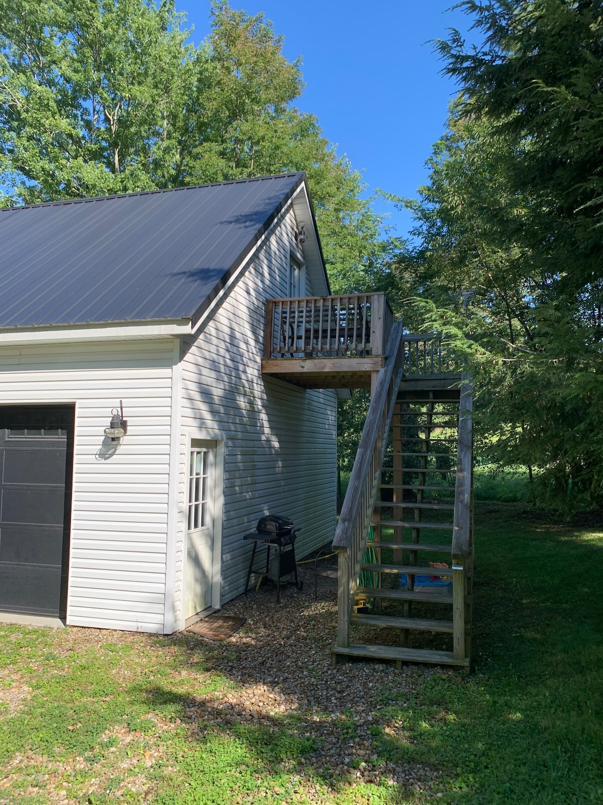 We look forward to welcoming you to the secluded beauty of our space, designed and built by my husband on our 20 acres of wooded property in the rolling hills of Central Ohio. A floor-to-ceiling glass front provides you with a view of fields green in summertime and ripe with goldenrod in the fall, four outdoor deck spaces invite you to relax in the beauty of nature, and a second story loft suite with a soaking tub are ready to provide you with rest and refreshment.