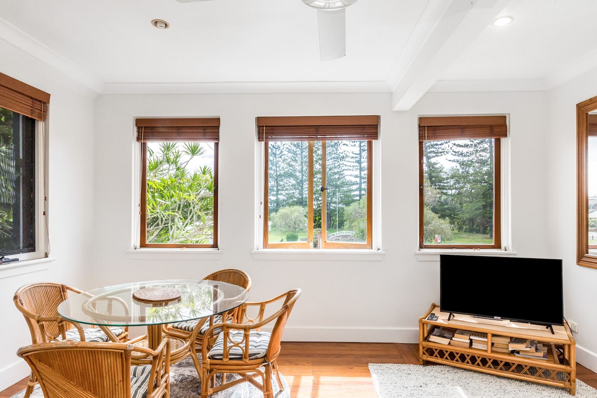 Herää aamuauringolle, joka valuu parvekkeelle rauhallisella puiden latvustolla. Rentoudu perheen tai ystävien kanssa tässä rauhallisessa lomakohteessa rannikolla. Tässä juuri päivitetyssä kahden makuuhuoneen itsenäisessä huoneistossa on kaikki, mitä tarvitset huolettomaan lomakohteeseen, mukaan lukien lomakeskustyyliset tilat. Nauti 18 metrin lämmitetystä uima-altaasta, kylpylästä, tenniskentästä, saunasta ja grillialueesta, jotka kaikki sijaitsevat vehreässä trooppisessa puutarhassa. Vaella kotoperäisen pensaikon läpi päästäksesi Tallows Beachille. Kaupunki on vain 6 minuutin ajomatkan tai 15 minuutin pyörämatkan päässä.