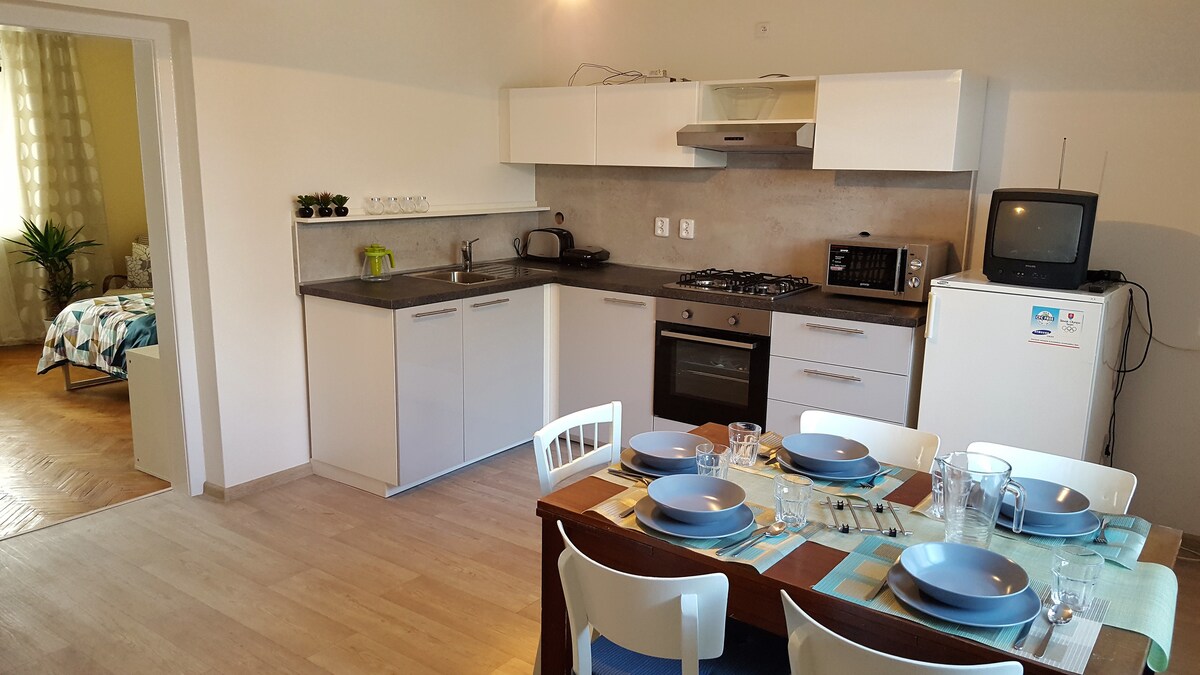 Nauti tyylikkäästä majoittumisesta tapahtumien keskellä. Moderni ja viihtyisä majoitus rauhallisella paikalla 10 minuutin kävelymatkan päässä Uherské Hradištěn keskustasta. Lähistöllä on puisto, pyöräreitti, supermarketti, vesipuisto kylpylällä, elokuvateatteri, jalkapallostadion ja talviurheilustadion. Huoneisto sijaitsee 3. kerroksessa ja siinä on moderni keittiö lisävarusteineen, kuluu kylpyhuone suihkulla, sänky, sohva, TV. Talon edessä on mahdollisuus yksityiseen pysäköintiin.