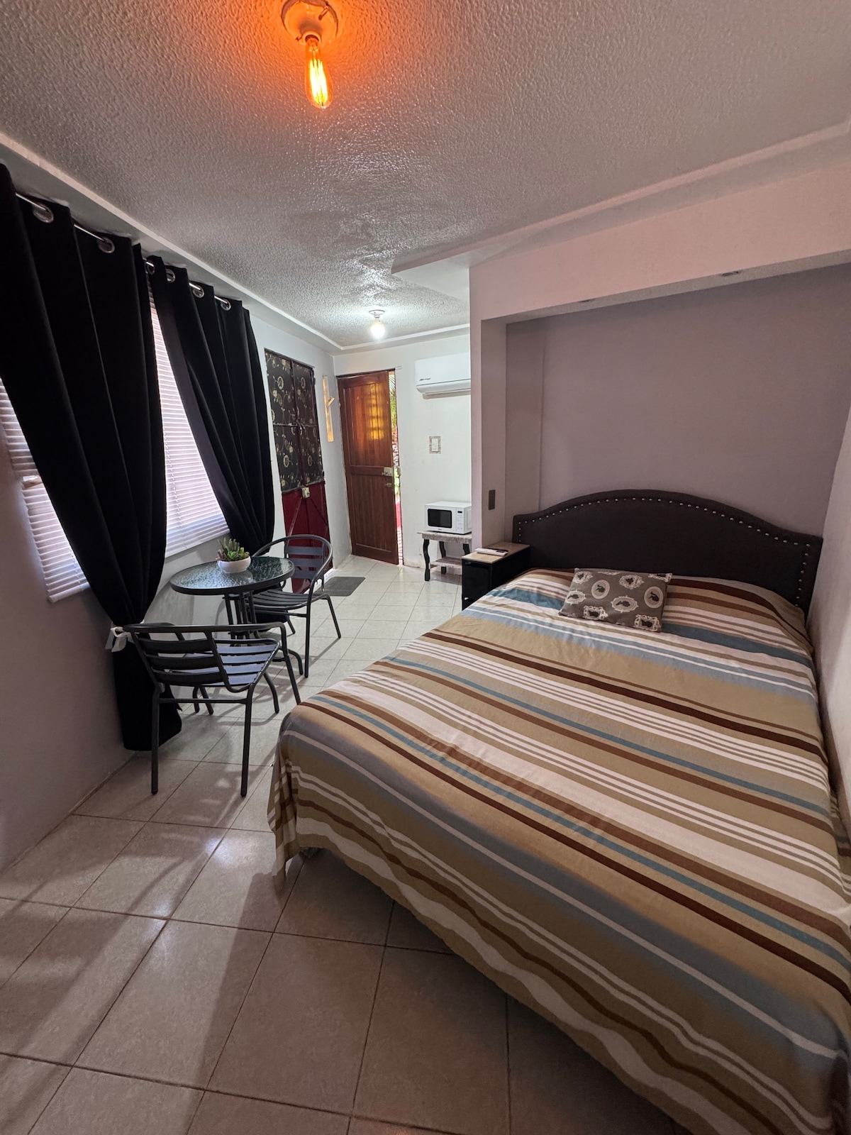 Majoitu Acayucanin sydämessä käytännöllisessä ja viihtyisässä minihuoneistossa, joka on ihanteellinen liikematkoille tai lepoon. Nauti mukavasta parisängystä, televisiosta, ilmastoinnista ja tuulettimesta. Keittiössä on minijääkaappi, kahvinkeitin, pöytä ja perusastiat sekä nojatuoli, jossa on sivupöytä, kaappi ja oma kylpyhuone, jossa on peili. Sen keskeinen sijainti pitää sinut lähellä kauppoja, ravintoloita ja liikennevälineitä, mikä tekee majoittumisestasi vieläkin käytännöllisemmän ja nautinnollisemman.