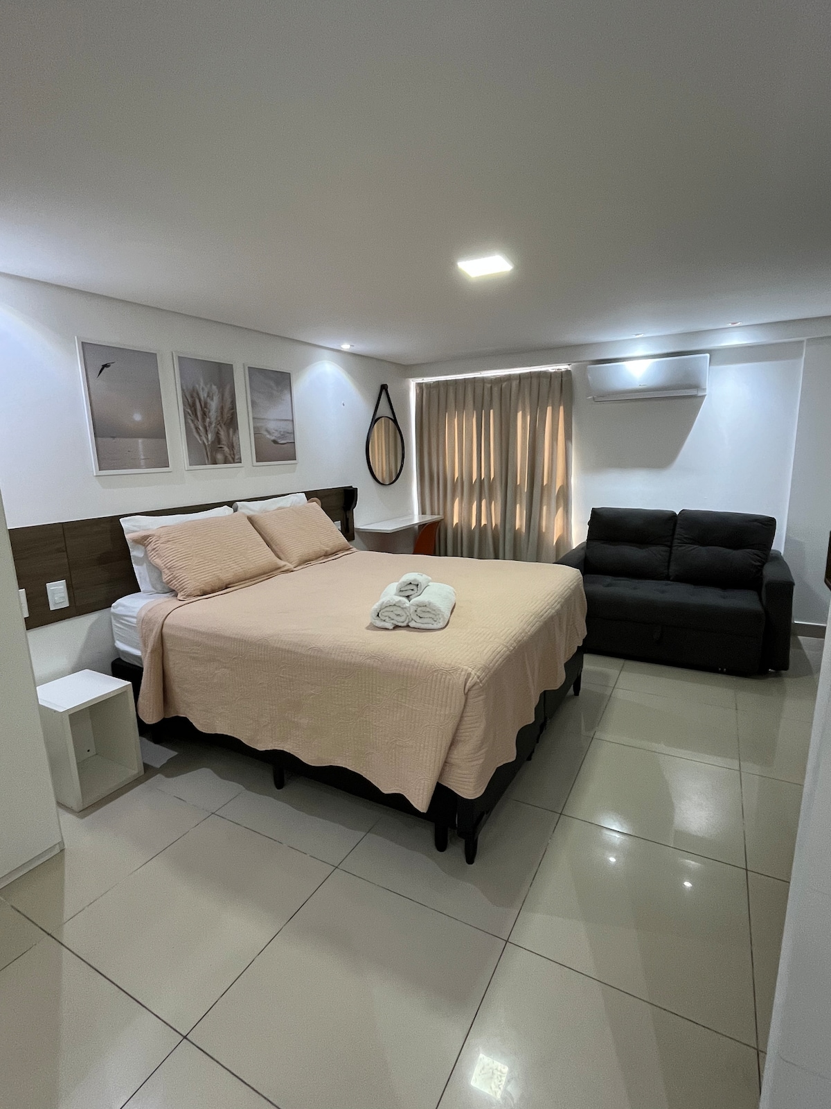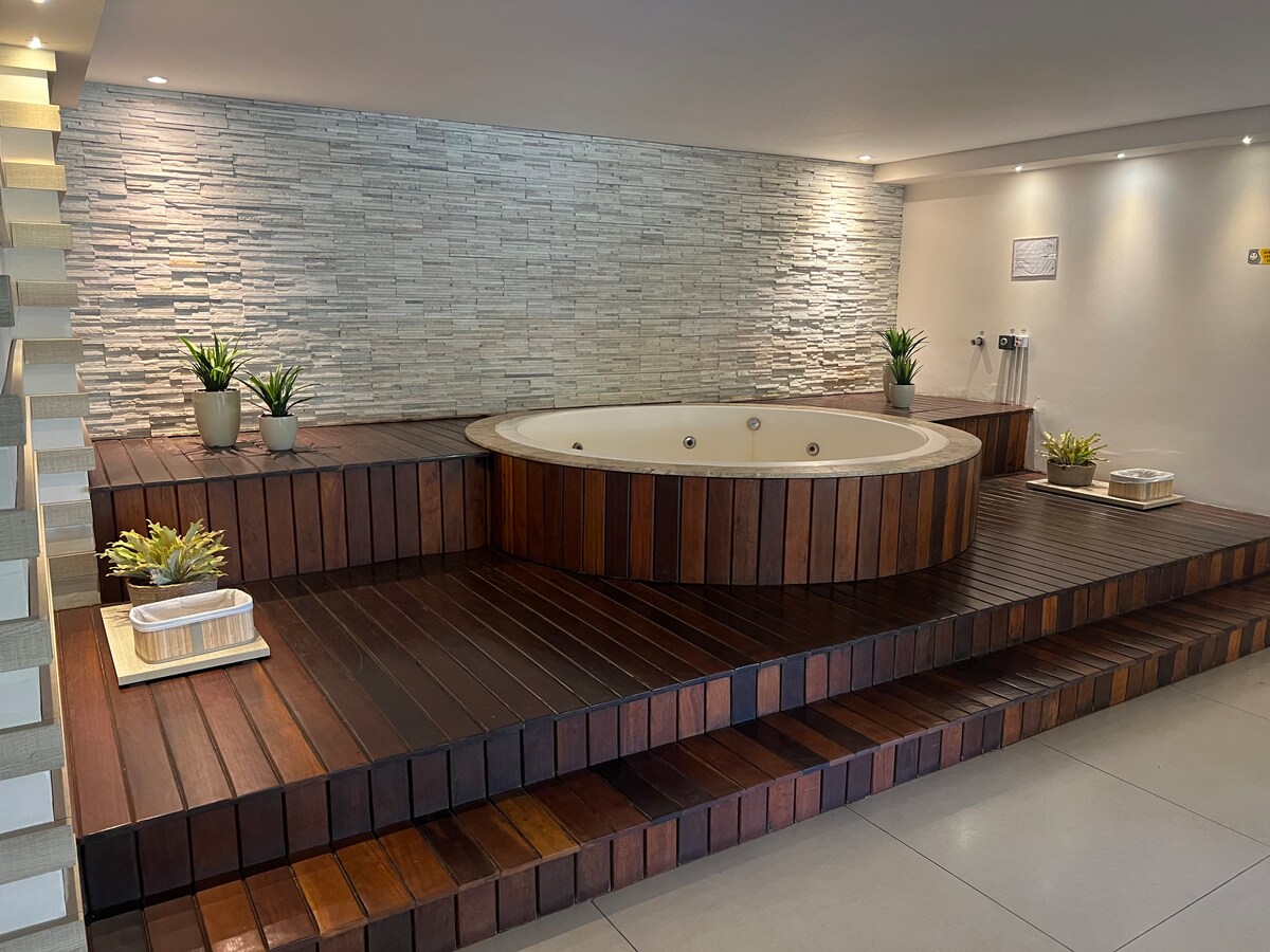 Erittäin tyylikäs huoneisto Tambaún parhaalla sijainnilla! Merenrantahuoneisto Nobile Hotel Tambaússa, 24 tunnin vastaanotto, lähellä käsityömarkkinoita, Amo Jampa -kyltti, leipomon, apteekin, ravintoloiden ja Hotel Tambaún vieressä. Voit tehdä kaiken tämän jalkaisin. Kävele jalkakäytävällä rauhallisin mielin. Tilaan mahtuu neljä henkilöä, ja siinä on yksi makuuhuone, jossa on queen-vuode ja vuodesohva. Wi-Fi, pysäköintipaikka, kuntosali, uima-allas, erinomainen perheille! Erittäin hyvin varusteltu. Keittiössä on liesi ja astioita.