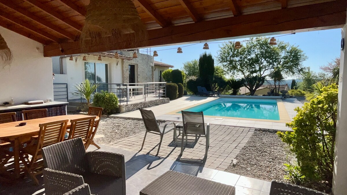 Tervetuloa yksityiseen keitaaseemme 1 tai 2 hengelle la roquetten sydämessä! Nauti trooppisten kasvien ympäröimästä lämmitetystä suolavesialtaasta. Tila tarjoaa sinulle varjon ja rauhallisen paratiisin. Nauti aamiaista, aperitiivia tai laita ruokaa uima-altaalla ulkoterassin keittiössä. Makuuhuone on ilmastoitu ja varustettu ylellisillä hotellin laadukkailla vuodevaatteilla ja luomuliinavaatteilla, jotta majoittumisesi olisi rentouttava ja ikimuistoinen.