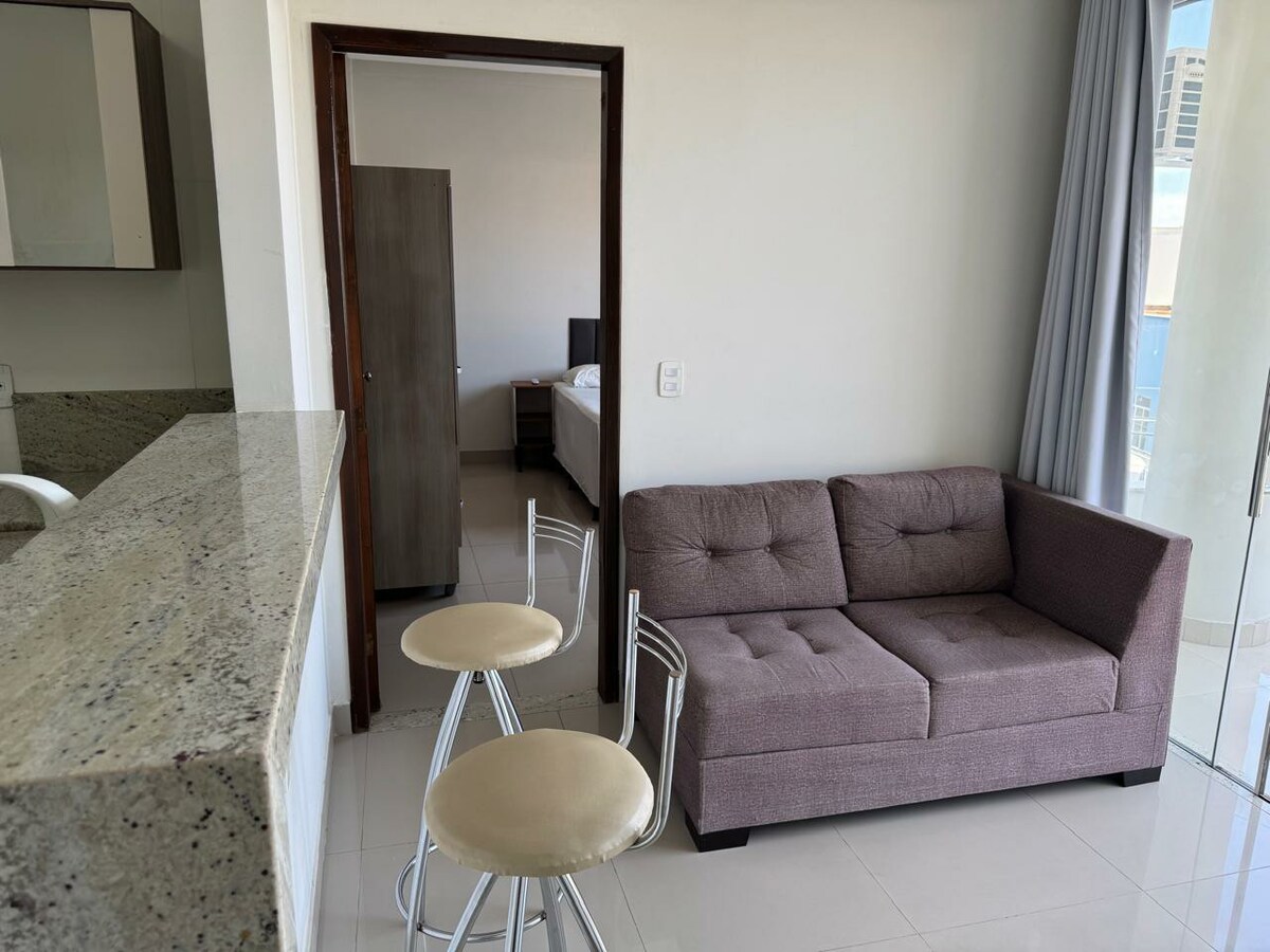 Perfeito para casais, o nosso studio romântico em Guanambi foi criado para proporcionar conforto, privacidade e um clima acolhedor. Com espaço integrado, moderno e bem iluminado, ideal para quem busca uma estadia tranquila e aconchegante. Ar-condicionado e Wi-Fi, garantindo conforto total. Banheiro privativo, moderno e funcional.
