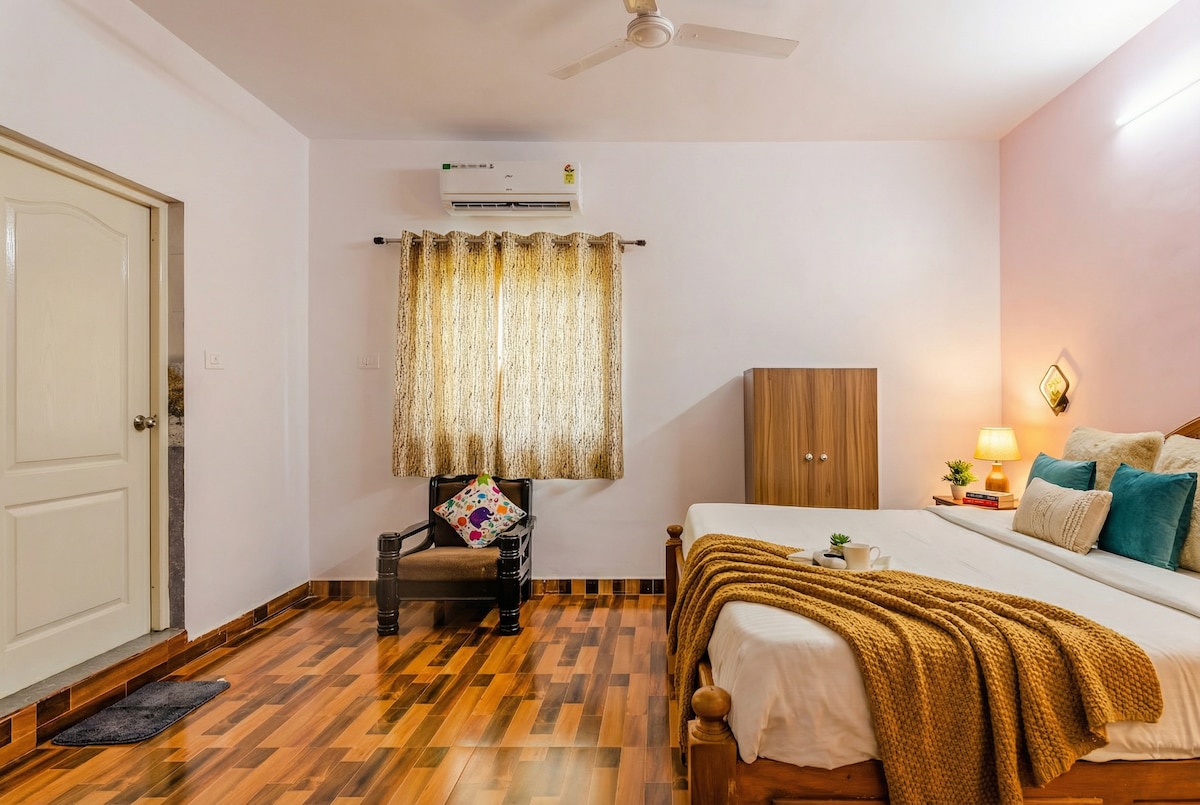Mandre House by Artios Stays – Yksityinen rantatalo 2BHK Tervetuloa Mandrem House by Artios Staysiin, viehättävään ja täysin yksityiseen 2BHK-rannikkokotiin, joka sijaitsee vain muutaman askeleen päässä Pohjois-Goan rauhallisilta Mandrem Beachin rannoilta. Tämä kohde on suunniteltu huolellisesti mukavuutta ja rentoutumista varten, ja se on ihanteellinen perheille, pariskunnille ja pienille ryhmille, jotka haluavat kokeaivata rantalomaa ja majoittua suosittujen kahviloiden ja paikallisten nähtävyyksien lähellä.