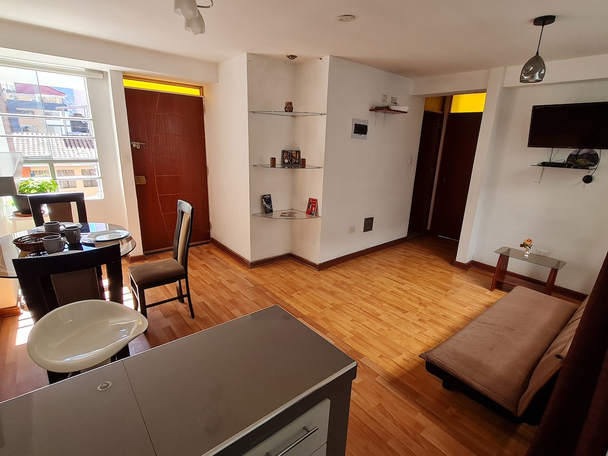 Kirkas ja mukava yksiö aitojen siirtomaatyylisten talojen toisessa kerroksessa. Ihanteellinen pariskunnille, jotka etsivät mukavuutta ja itsenäisyyttä, kaikki palvelut sisältyvät hintaan. Sijaitsee vain 8 minuutin kävelymatkan päässä Plaza de Armasista, lähellä nähtävyyksiä, kuten Koricancha ja Sacsayhuaman. Supermarketit, apteekit, pankkiautomaatit ja San Pedron markkinat ovat vain muutaman askeleen päässä, joten tämä on täydellinen valinta nauttia Cuscon viehätyksestä ja käytännöllisyydestä.