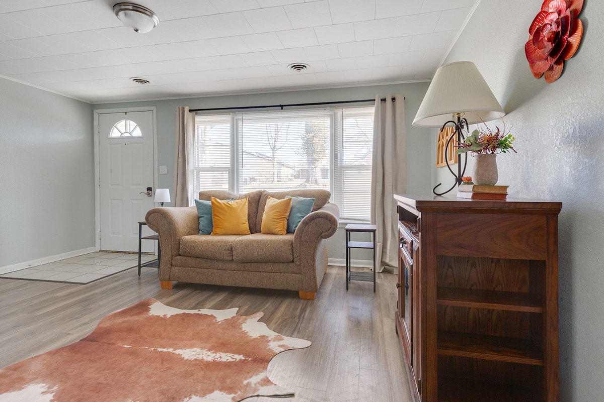 • 8 hengen majoitus - 2 queen-vuodetta ja 4 yhden hengen vuodetta, 4 makuuhuonetta, 2 1/2 kylpyhuonetta. • Astu ajassa taaksepäin ja nauti tästä 1920-luvun Craftsman Bungalow -tyylisestä kaksikerroksisesta kodista, joka on täysin kunnostettu vuonna 2024. • Kohteessa on työhuone, jossa on ompelukone, 70 tuuman televisio olohuoneessa ja mukautetut amish-keittiökaapit. • Kynsijalka-amme, portaikko, pylväät, puulattiat ja suuri osa koristeista ovat alkuperäisiä. • Kävele 3 korttelia 13 MSQC-kangasmyymälään, ruokakauppaan, ruokapaikkoihin ja JC Penney Museumiin. • Se on Missouri Quilt Museumin nurkan takana.