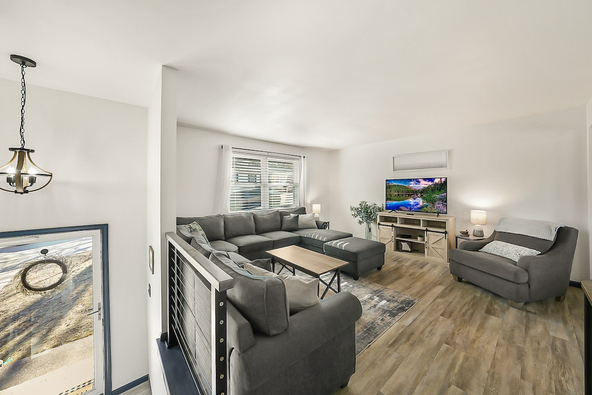 Experience the charm of a farmhouse in the city! This fully furnished two-bedroom home offers king-size beds and two pull-out twin trundles. Enjoy fiber-optic internet, phone chargers at each bed and couch, a water softener, and complimentary breakfast snacks. Ideal for families or small groups seeking a cozy, modern retreat with essential amenities. A pack-and-play crib is available in the closet for infants.