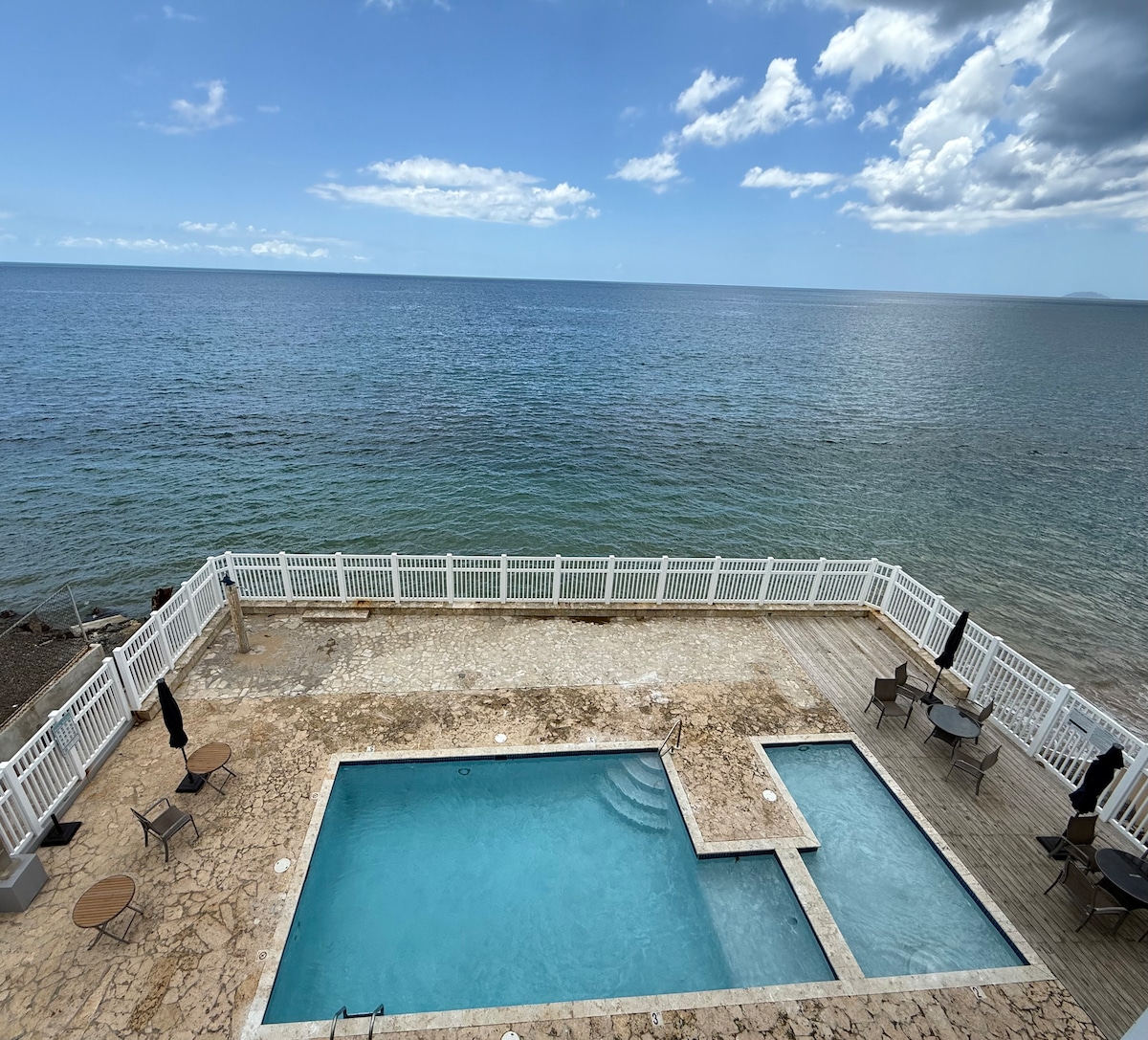 2 makuuhuoneen/2 kylpyhuoneen rantakondominen Pelican Reefissä Rincónin Corcega-naapurustossa. Nauti suorasta pääsystä rannalle, kahdesta äskettäin remontoidusta uima-altaasta, varjostetuista huvimajoista, joissa on hiiligrillit, ja paikan päällä olevasta kodinhoitohuoneesta. Tästä toisen kerroksen yksiköstä on merinäkymät, upeat auringonlaskut ja viileä tuuli. Vain 2 mailin päässä Rincónin keskustasta, josta on helppo pääsy ravintoloihin, baareihin, toreille ja maailmanluokan lainelautailurannoille. Lemmikki- ja perheystävällinen. Yli 25-vuotiaat varatakseen. Pysäköinti tapahtuu saapumisjärjestyksessä aidatulla pysäköintialueella.
