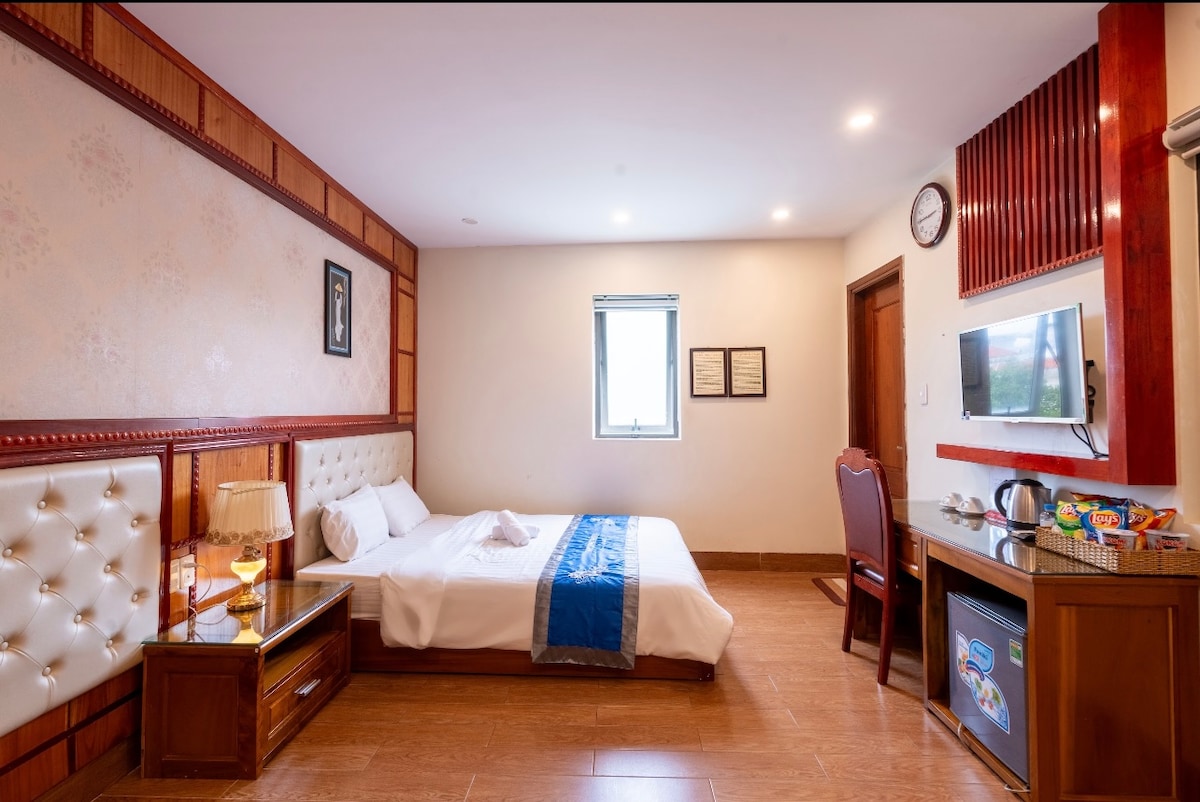 Da Nangin sinisen valtameren✨ innoittama loma ✨ Tilaamme on suunniteltu meren kimaltelevien sävyjen mukaan, ja se tarjoaa rentoutumista ja lämpimän, viihtyisän tunnelman. Mukavuudet, joista pidät: ☕ Ilmainen tee, kahvi ja pullovesi huoneessa 🛏️ Tilava huone, jossa on äly-tv, ilmastointi ja vaatekaappi 🧼 Yksityinen kylpyhuone, jossa on ilmaisia hygieniatuotteita ✨ Päivittäinen siivous mukavuutesi vuoksi 📍 Täydellinen sijainti: vain 5 minuutin kävelymatka My Khe Beachille, joka on yksi maailman kauneimmista rannoista.