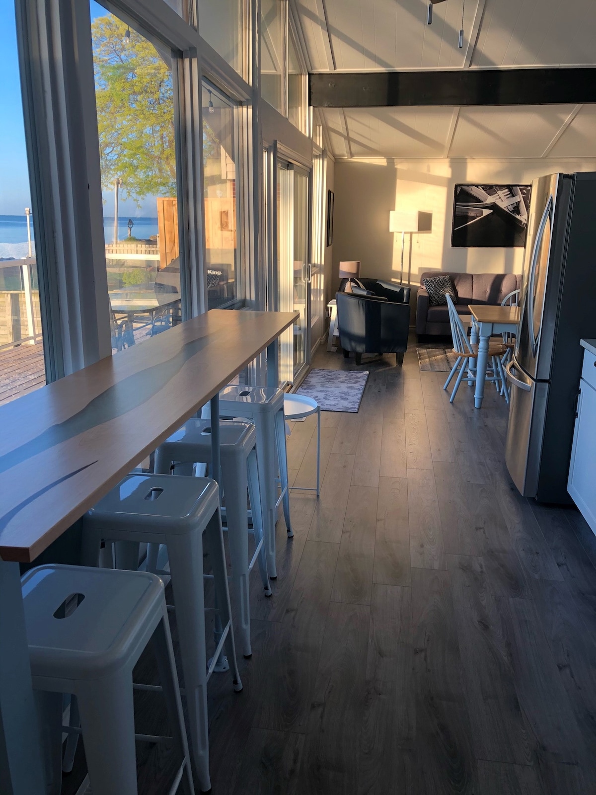 Lomaretriitti Simcoe-järvellä auringonlaskunäkymällä. Etuhuoneet ja keittiö joelle ja olohuoneeseen päin, ruokailuhuone, muut huoneet ja avoin keittiö järvelle päin. Voit nauttia näkymistä talon jokaisesta osasta. Täysin kunnostettu sisustus. Nopea internetyhteys, työtila, lähellä monia maailmanluokan perheaktiviteetteja, kuten kalastusta, metsästystä, jääpalaa, moottorikelkkailua. Kätevästi tunnin päässä Torontosta, lähimmästä pikkukaupungista 5 minuutin ajomatkan päässä ja Suttonin kaupungissa 12 minuutin ajomatkan päässä.