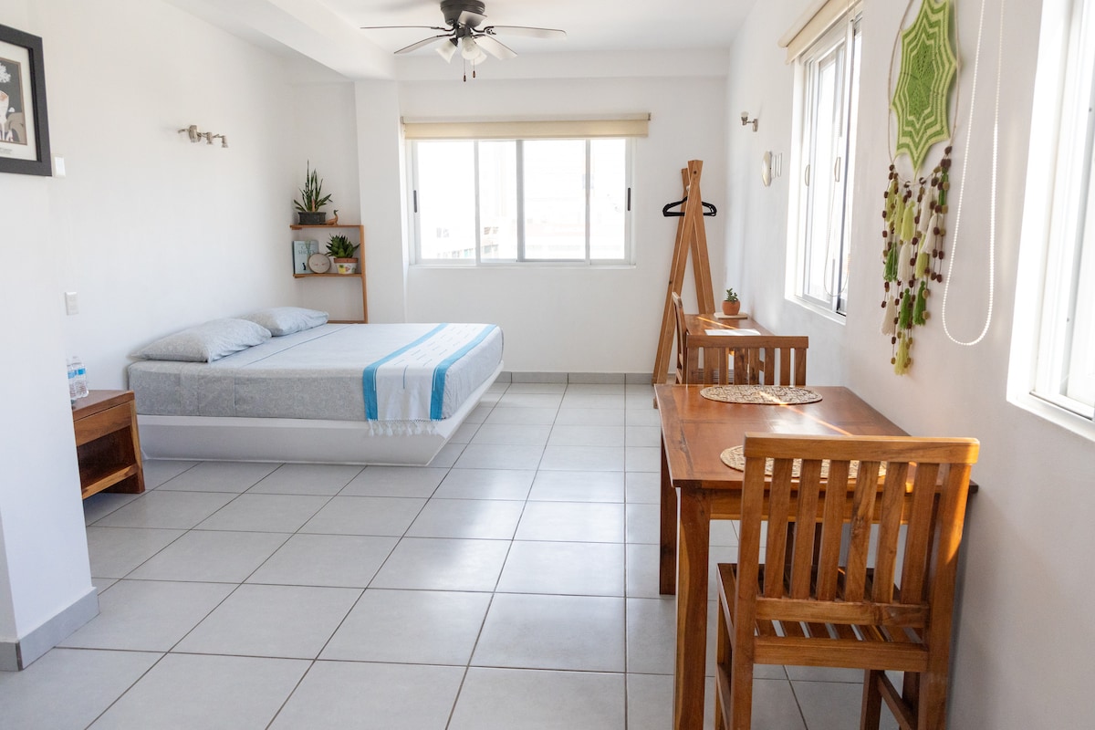 Just a 2.2. Km walk from the Puerto Juárez beach is this private studio located, ideal for getting to know the downtown area of Cancun and the quietest beaches in the area. You'll find just a steps away a local market, restaurants, coffee shops and the bus stop that will take you everywhere. - A solo 10 minutos caminando de la playa Puerto Juárez se encuentra este estudio privado, ideal para conocer la zona centro de Cancún y las playas más tranquilas de la zona.