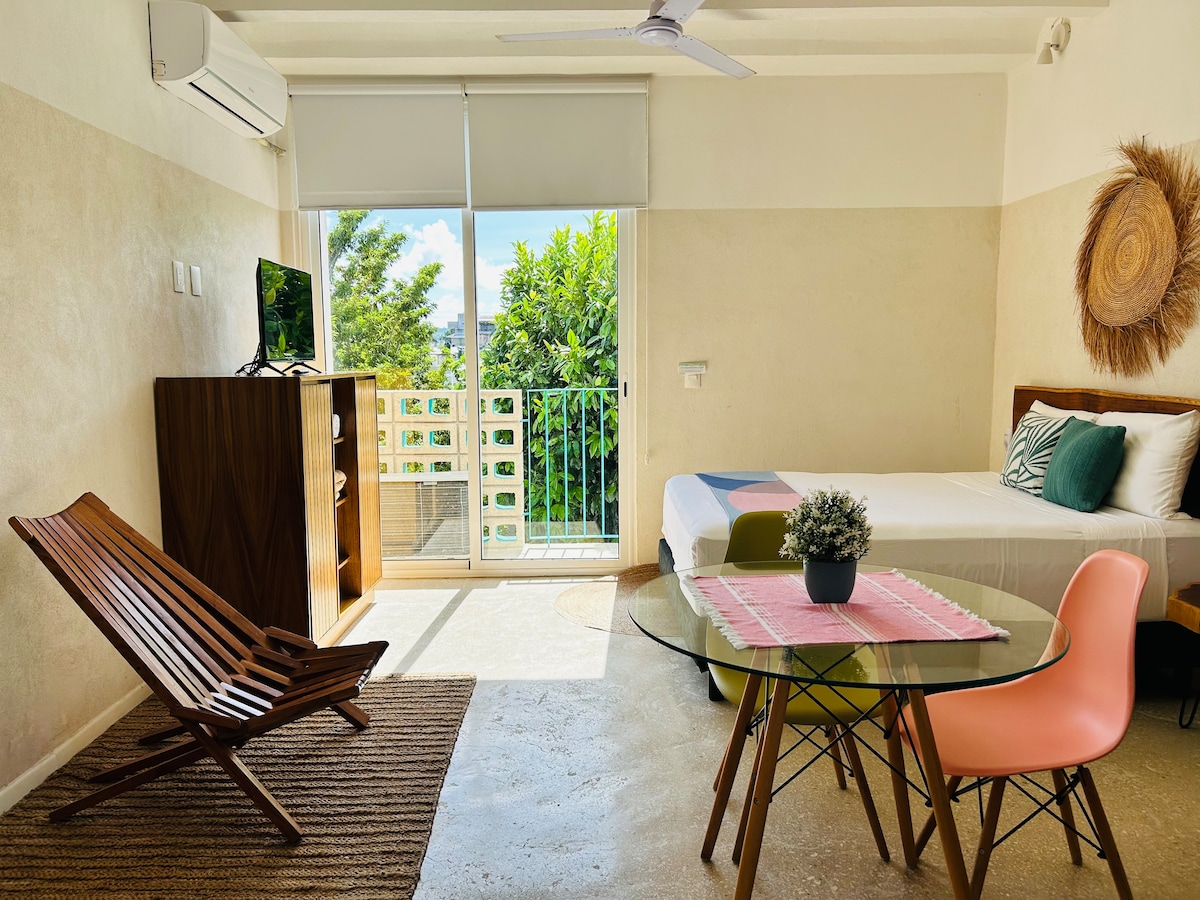 Descubre Cancún desde este cómodo estudio en el corazón de la ciudad. A 100 mts de la terminal de camionesADO y del autobús R1 que te lleva directo a las playas. Rodeado de cultura local como el Parque de las Palapas, Mercado 23 y 28. Zona tranquila, segura y con todo cerca: restaurantes, supermercados y tiendas. Ideal para viajeros que buscan comodidad, ubicación y autenticidad en su experiencia. Si lo que te gusta es conocer la vida local y caminar esta es ¡Tu base perfecta en Cancún!