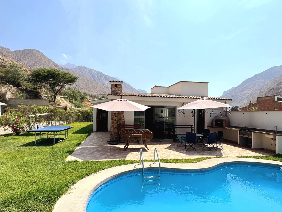 🌿 Nauti unohtumattomasta lomasta mökissämme Santa Rosa de Quivesissa! Pääse rutiineista ja ole yhteydessä luontoon rauhallisessa ja kodikkaassa ympäristössä, rentoudu, nauti perheesi tai ystäviesi kanssa ja koe ainutlaatuisia hetkiä puhtaan ilman ja kauniiden maisemien ympäröimänä. 🌟 Talomme parhaat puolet: • 📌1 h 30 minuuttia Limasta • 🏊♀️ Yksityinen uima-allas • 🍽 Varustettu keittiö (keittiö ja kodinkoneet) • 🎯 Pöytätennispöytä + pöytäjalkapallo • 📺 Direct tv • 🔥 Grilli • 🛏 runsaasti tilaa