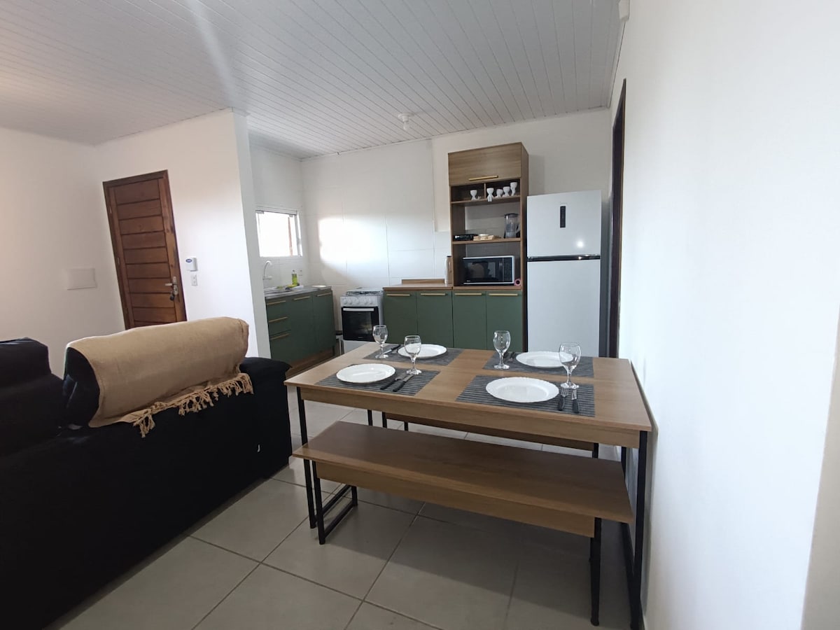 Kodikas talo 500 m mereltä, wifi, Android-TV, paljon tilaa rannalla (jopa petankkiin), hengenpelastaja, rauhallinen paikka, kaunis rantakatu, jossa on pyöräily- ja luistelureittejä, pieniä saaria jutusteluun ja chimarrão-juomaan, lentopallokenttiä, leikkipaikka lapsille. * Ota mukaan pyyhkeet ja vuodevaatteet (ei tyynyjä). Rentoudu perheen kanssa tässä rauhallisessa majoituksessa.