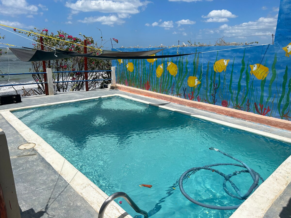 La Casita sijaitsee korkealla, ja sieltä on suora pääsy rannalle / merelle, ja siellä on 3 karjatilaa, joihin voit asentaa riippumattoja, mökkejä tai makuupusseja. Siinä on 2 huonetta: tärkein huone, jossa on 1 parivuode ja 1 yhden hengen vuode; toissijaisessa on 1 kerrossänky (2 yhden hengen patjaa) ja 1 henkilökohtainen vuode. Sijaitsee 1 tunnin 30 minuutin päässä La Capitalista tai 40 minuutin päässä Diriambasta on täydellinen paikka mennä siivoamaan ja nukkumaan meren aalloissa