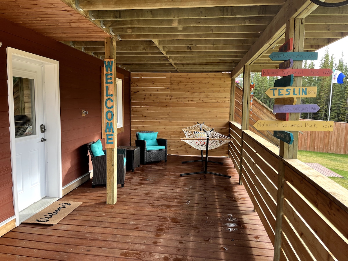 Sijaitsee Yukon-joen yläjuoksulla, 2 kilometrin päässä Alaskan valtatiestä, puolen tunnin ajomatkan päässä Whitehorsesta. Mökki on Marsh-järven rannalla, jonne kokoontuu joka kevät tuhansia joutsenia, ankkoja ja muita vesilintuja. Upea näkymä vuorenhuipuille. Hiekkaranta ja metsäpolut. Mökki on omavarainen, ja siellä on antiikkinen parivuode, puuhella ja keittokomero, jossa on sininen kannu vesijärjestelmä, pieni jääkaappi ja keittolevy. Ilmainen wifi ja koiraystävällinen. Suloinen ulkohuone metsässä.