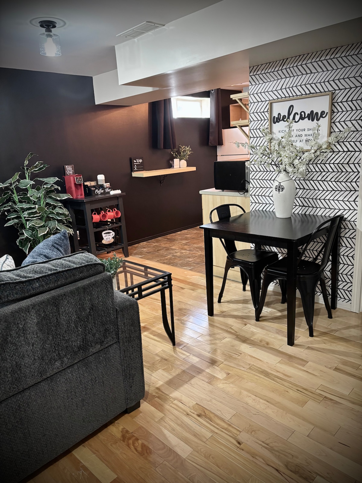 Tervetuloa yksityiseen pohjakerroksen sviittiin, jossa on erillinen sisäänkäynti ja EI portaita. Tämä moderni retriitti sopii erinomaisesti 1–2 vieraalle, ja se sijaitsee vain korttelin päässä West Lethbridgen suurimmasta viheralueesta, Nicholas Sheran Parkista. Mukavuuksiin kuuluvat täysin varusteltu keittiö, oma työtila, jossa on nopea wifiyhteys, ja 50 tuuman Roku-televisio. Nauti täydellisestä yksityisyydestä kätevässä paikassa vain muutaman minuutin päässä YMCA:sta, Cavendish Farms -areenalta, yliopistosta, Chinook HS:stä, LDS-temppelistä ja Paradise Canyon Golf Resortista.