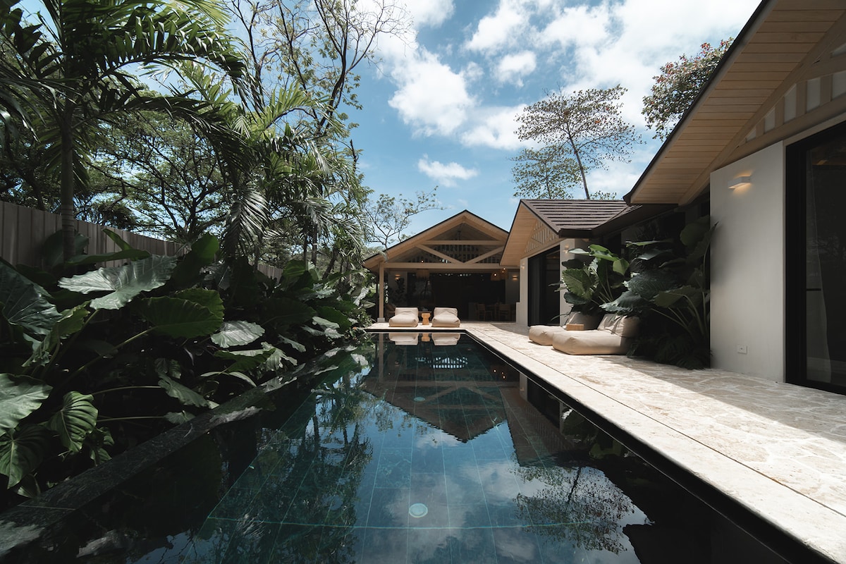 Tervetuloa Casa Adaleneen – yksityiseen trooppiseen lomakohteeseen, joka sijaitsee Santa Teresan viidakon yläpuolella. Tämä ylellinen huvila sijaitsee vain lyhyen kävelymatkan päässä maailmanluokan surffauspaikoista ja paikallisista ravintoloista. Huvilassa on henkeäsalpaava infinity-allas, panoraamanäkymät merelle ja auringonlaskuun, nopea valokaapeli-WiFi ja saumaton sisä- ja ulkotilojen yhdistelmä. Jokainen hetki täällä tuntuu unelta, olitpa sitten siemaillen kahvia ja katsomassa aaltoja tai rentoutumassa hehkuvan auringonlaskun alla. NOPEA WIFI-NOPEUS 500 MBS: Työskentele|Suoratoista|Rentoudu