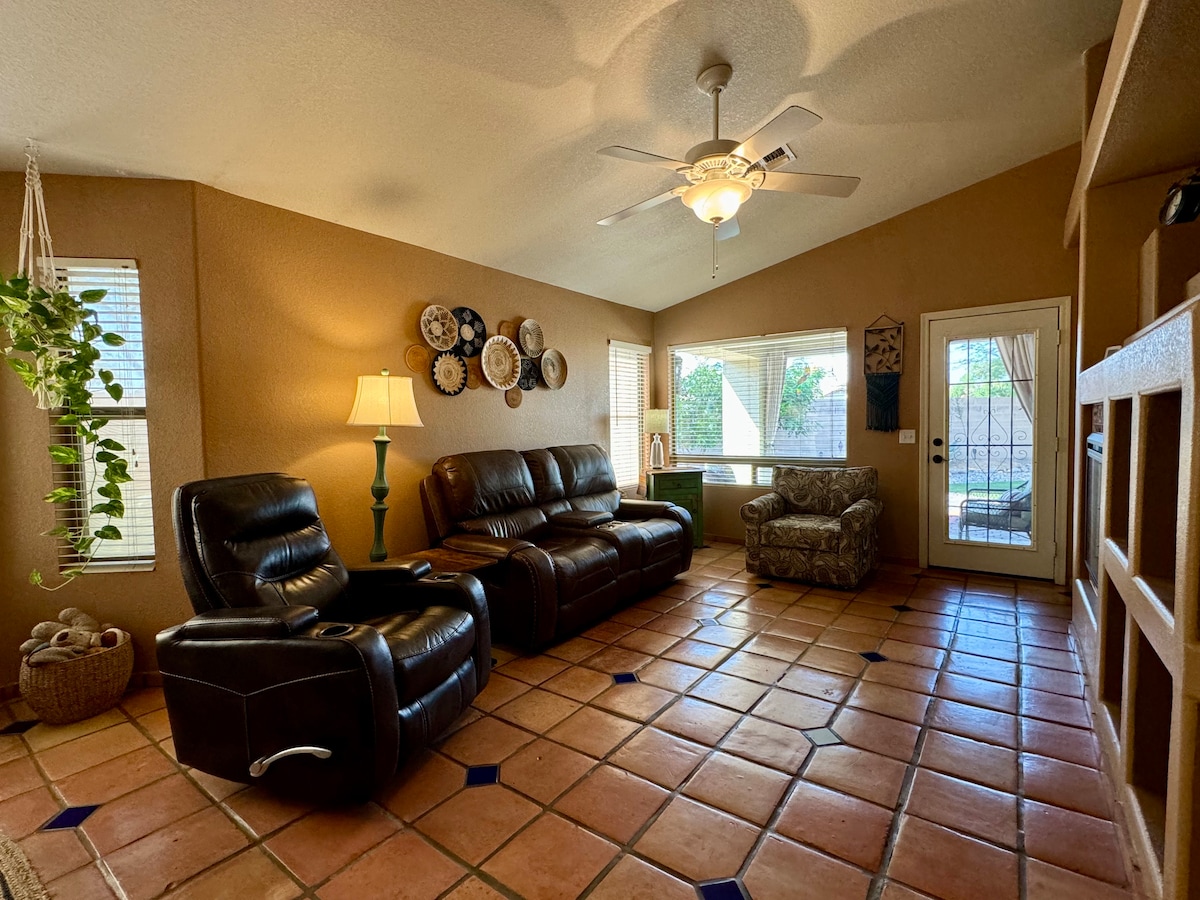 Täydellinen lomapaikka ja aavikkoloma. Äskettäin sisustettu ja täysin päivitetty. 3 makuuhuonetta, 2 kylpyhuonetta, lämmitetty uima-allas, ulkoistuimet ja paljon tilaa rentoutumiseen. Grilli, uima-altaan aurinkovarjot ja uima-altaan lelut. Mukava, hiljainen ja turvallinen naapurusto, 2 älytelevisiota, WiFi, ulkotilan tulisija sekä sisätilojen takka täydellisiin elokuvailtoihin. Kaikki mitä tarvitset auringonpaisteeseen. Uskomattomia vaellusmahdollisuuksia 30–50 minuutin päässä. Olen luonut paikan, jonne voit paeta ja virkistyä. Suolavesisallas.