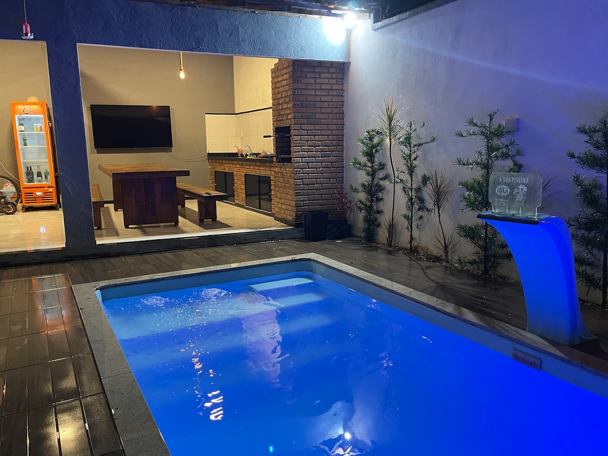 Esta acomodação é ampla, confortável, equipada com área de lazer, piscina, 3 quartos - todos com ar condicionado, uma suíte, cozinha equipada com tudo, sala ampla, garagem para 2 ou até 3 carros. Ideal para quem tem crianças, pois possui um quarto infantil com cama montessori, etc. Lugar tranquilo para descanso, com espaços pra redes e uma piscina com churrasqueira maravilhosa para curtir com a família ou fazer algum aniversário.