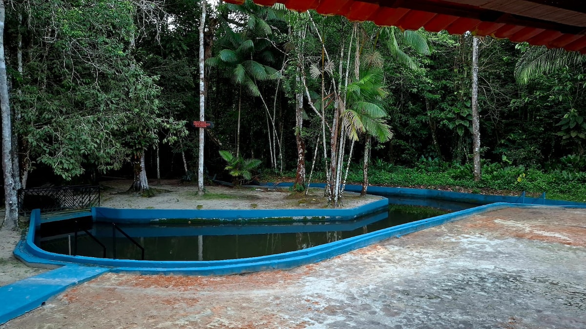 Relaxe com toda a família nesta acomodação tranquila. Sitio com excelentes acomodações, 3 quartos sendo uma suíte com camas de casal e ganchos para redes, cozinha completa, casa varandada com armadores de redes e quadra de vôlei. Possui casa em anexo com um quarto, banheiro externo e varanda. Desfrute de um maravilhoso igarapé e uma piscina com água natural.