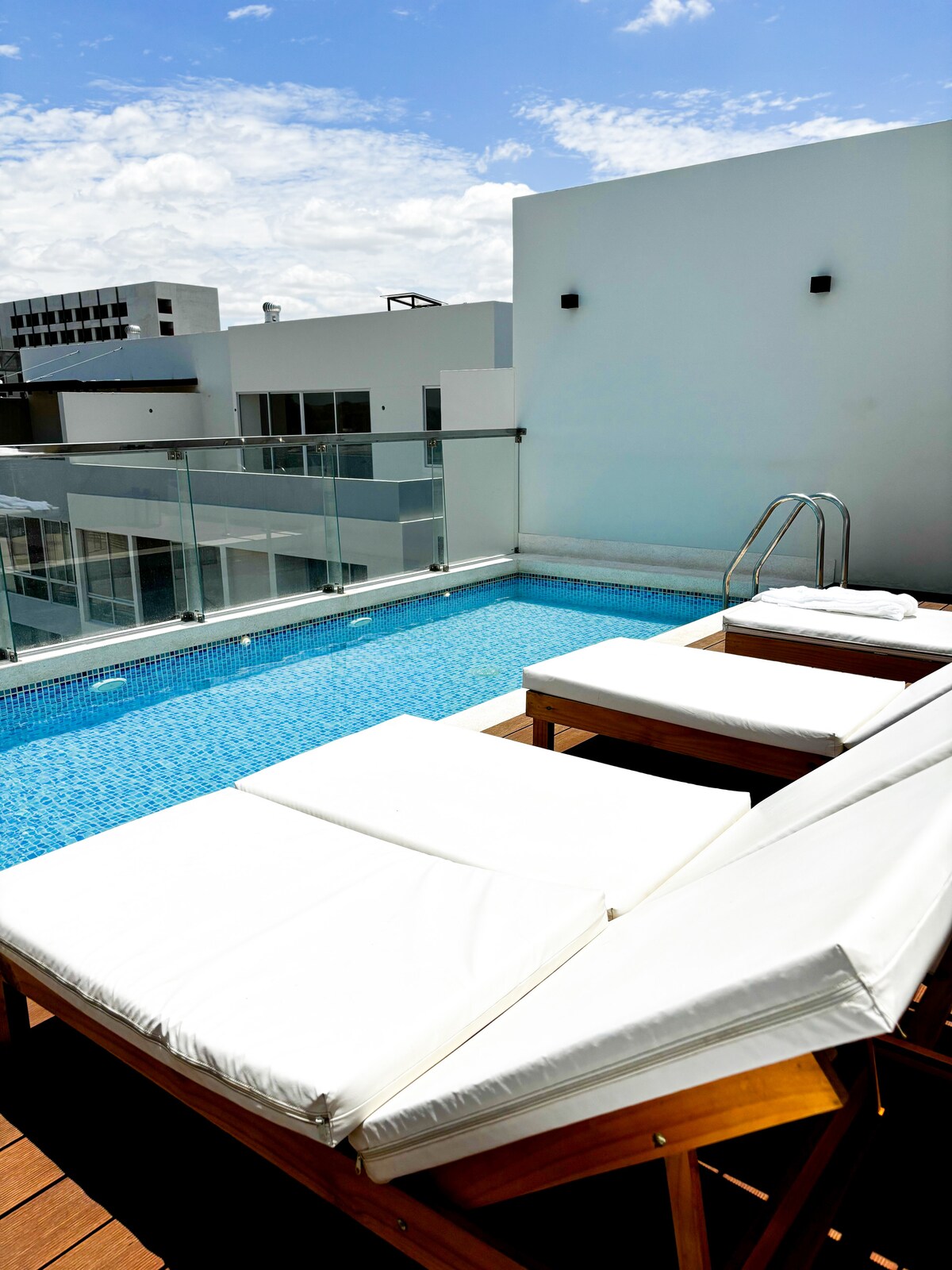 Moderni ja turvallinen huoneisto uima-altaalla | 3 huonetta + WiFi