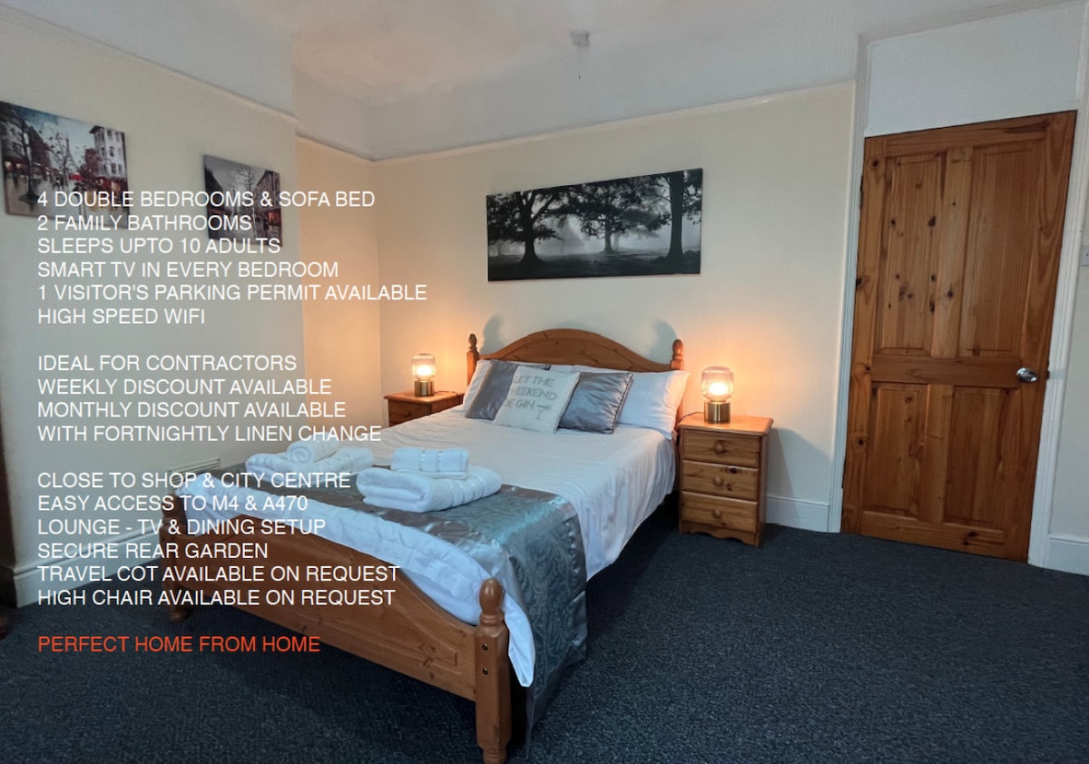 Moderni itsenäinen 1 makuuhuoneen talo. Viihtyisä olohuone, jossa on litteä älytelevisio. Tarjolla on välttämättömyystarvikkeita, kuten vedenkeitin, mikroaaltouuni, leivänpaahdin, jääkaappi, haudutuspata, silitysrauta, tuuletin ja hiustenkuivaaja. Yläkerran kahden hengen makuuhuoneessa on oma suihku. Paikallinen lähikauppa ja bussipysäkki ovat 5 minuutin kävelymatkan päässä. Paikallinen bussi vie sinut kaupungin keskustaan noin 20 minuutissa. Principality Stadium, Cardiff Bay, Cardiff Castle kaikki 20 minuutin auto-/bussimatkan päässä. St Fagans Museum 7 minuutin ajomatkan päässä.