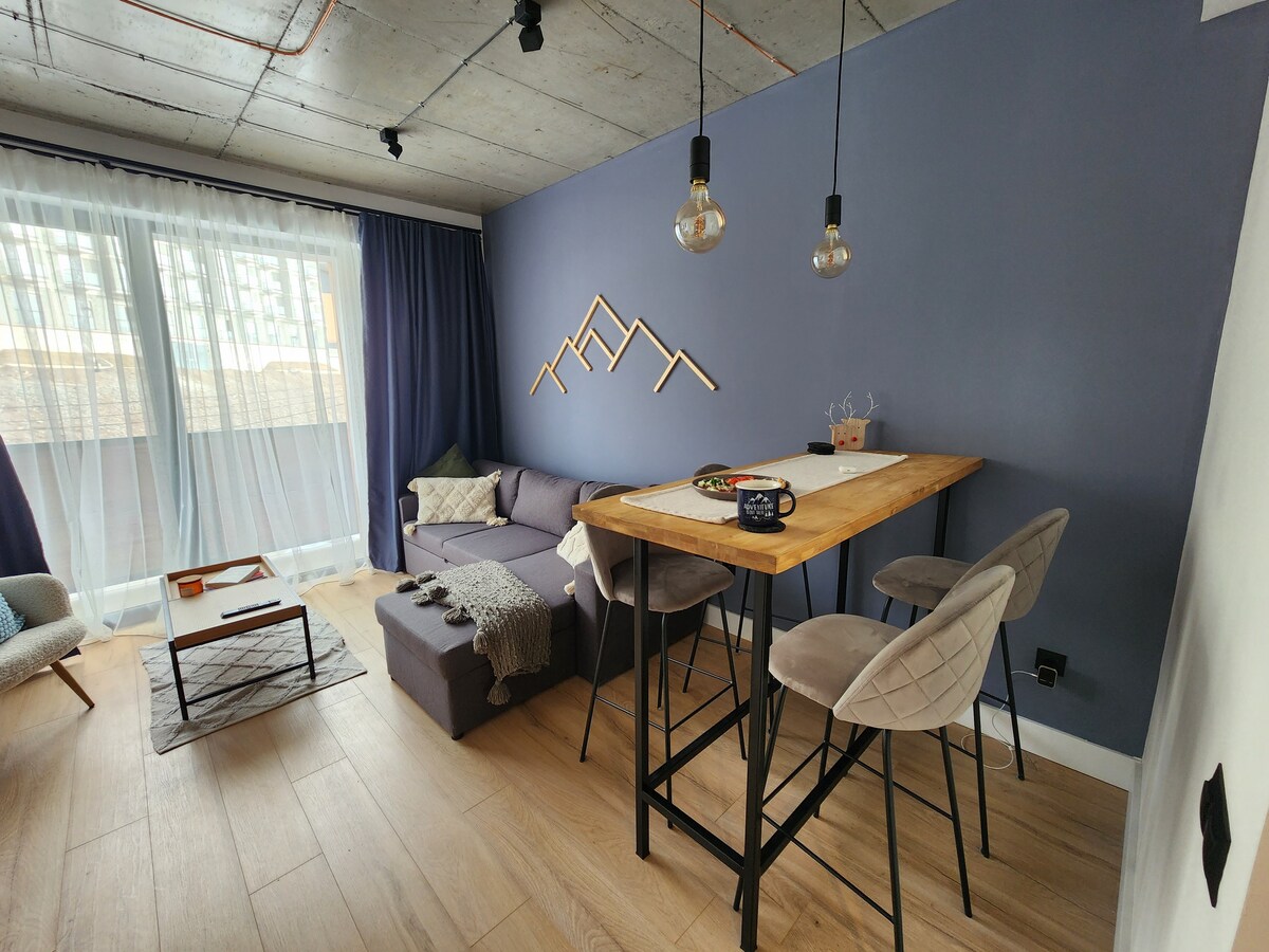 Welcome to the studio in Gudauri, Georgia, at an altitude of 2200 metres! Fresh renovation with wood and stone creates a cosy mountain atmosphere. Perfect lighting, functional areas - living room, bedroom, kitchen with panoramic windows giving natural light. The sunny side offers stunning mountain views. Close to the ski lift, shops and restaurants - ideal for a ski holiday. This studio combines style, comfort and functionality for an unforgettable holiday.