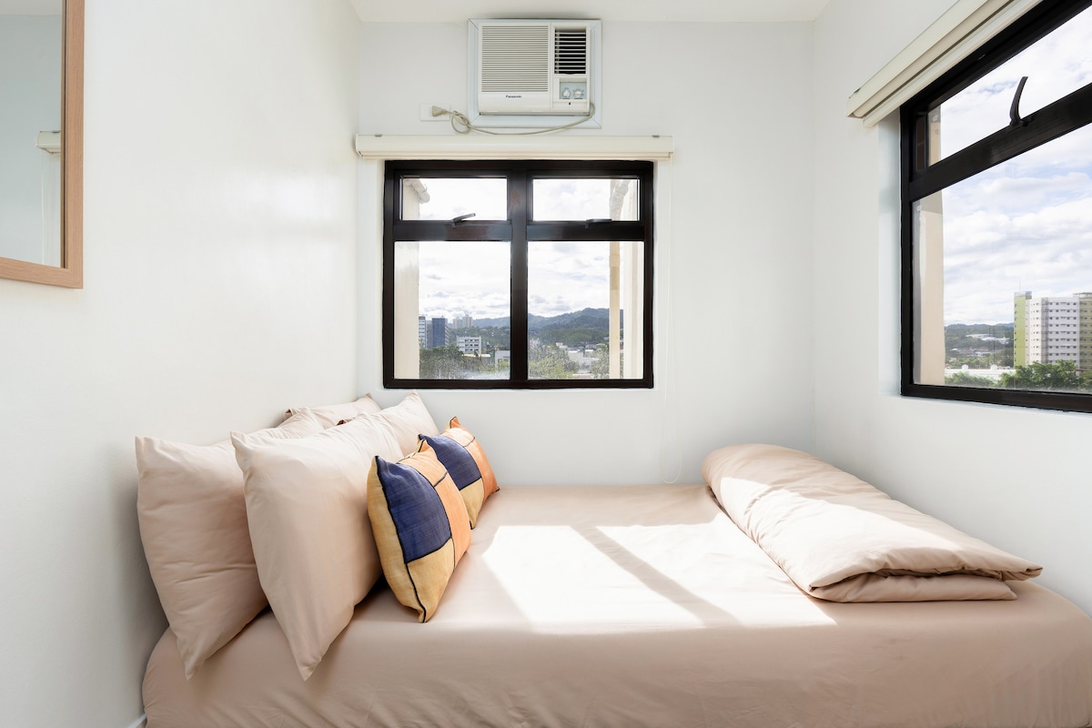 Tervetuloa rauhalliseen kaupunkilomaasi! Tilava studioyksikkömme sijaitsee Cebu Cityn sydämessä ja tarjoaa rauhoittavan zenin inspiroiman tunnelman, jossa on rauhoittavaa puuta ja vehreää kasvillisuutta, mikä tarjoaa täydellisen turvapaikan rentoutumiseen. Rentoudu parivuoteessa vilkkaan kaupungin tutkimisen jälkeen ja astu 12. kerroksen parvekkeelle, jolta on henkeäsalpaavat näkymät kaupungin taivaanrantaan ja lumoaviin auringonlaskuihin. Varaa majoituksesi nyt ja nauti todella unohtumattomasta kaupunkikeitaasta.