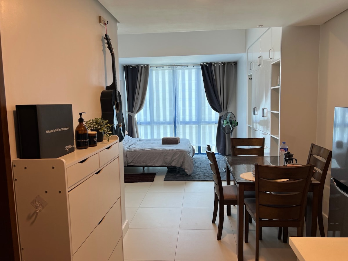 Tervetuloa kotiisi pois kotoa Cebun sydämessä! Tämä täysin kalustettu yksiö sijaitsee Cebu IT Parkissa, Cebun suosituimmassa elämäntyyli- ja kaupunkikohteessa. Nauti pääsystä uima-altaalle, kuntosalille, lasten leikkipaikalle, nopeasta internetistä/Wi-F:stä, älytelevisiosta Netflixillä, mukavasta vuoteesta, raikkaista liinavaatteista ja pyyhkeistä sekä täysin varustetusta keittiöstä ja ruokailutilasta. Tulet myös rakastamaan kätevyyttä olla lähellä Sugbo Mercadóta, Ayala Mallia, pesuloita, lähikauppoja, pankkiautomaatteja, maksullisia pysäköintialueita ja paljon muuta.