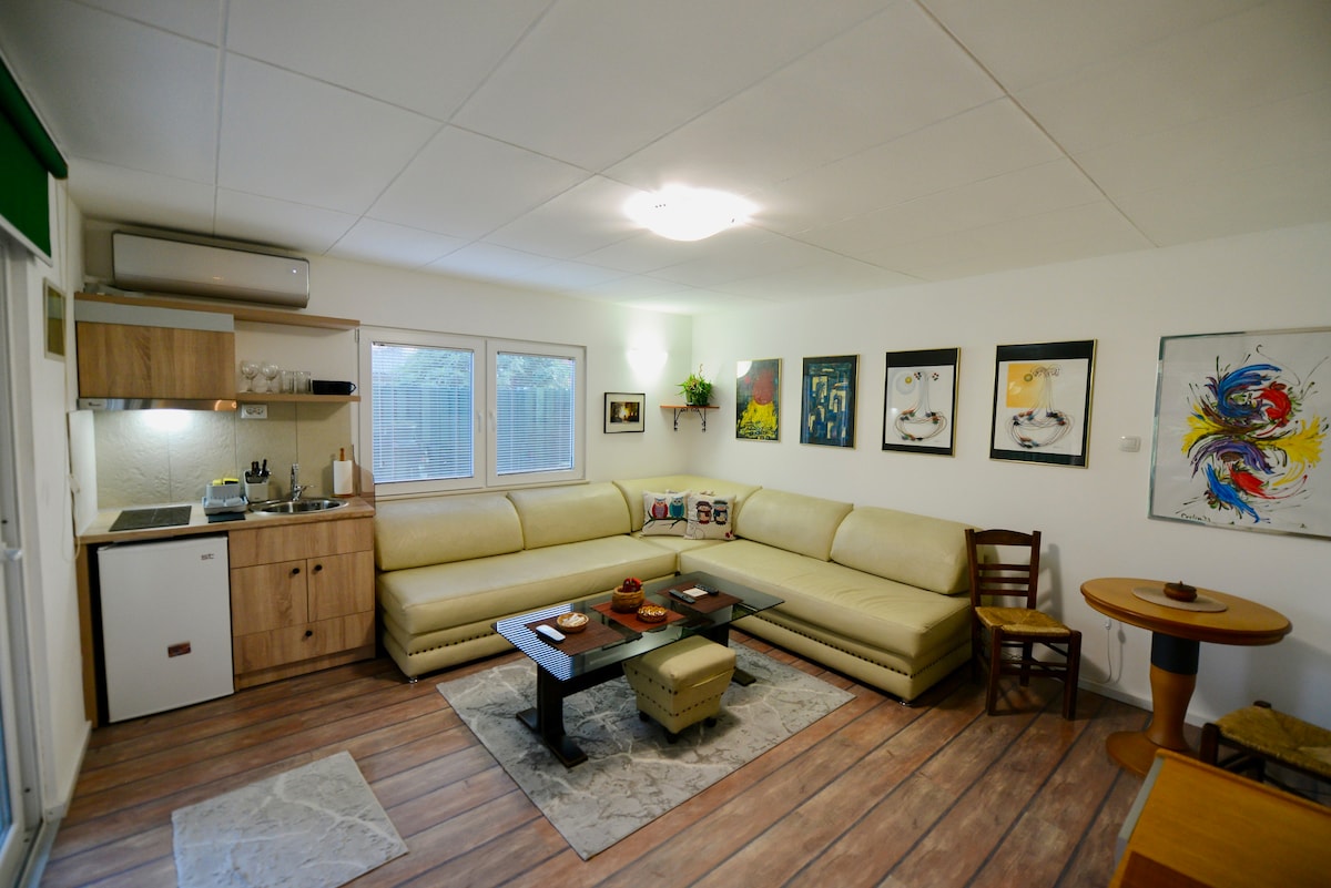 Uusi huoneisto sijaitsee aivan joen takana Hilton-hotellia vastapäätä, Mercedes-rakennuksen takana. Se on modernisti kalustettu ja varustettu ilmastoinnilla, WiFi-yhteydellä, televisiolla ja kaikilla muilla mukavuuksilla, joita tarvitset nauttiaksesi erinomaisesta majoittumisesta. Siellä on myös ilmainen pysäköintipaikka. Huoneisto sijaitsee noin 3 km:n päässä kaupungin keskustasta.