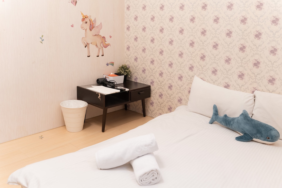 Taichung Sleeps Pink Double Room * Night Market/Refrigerator/Elevator to Outside Window/Working Table/Large/Family