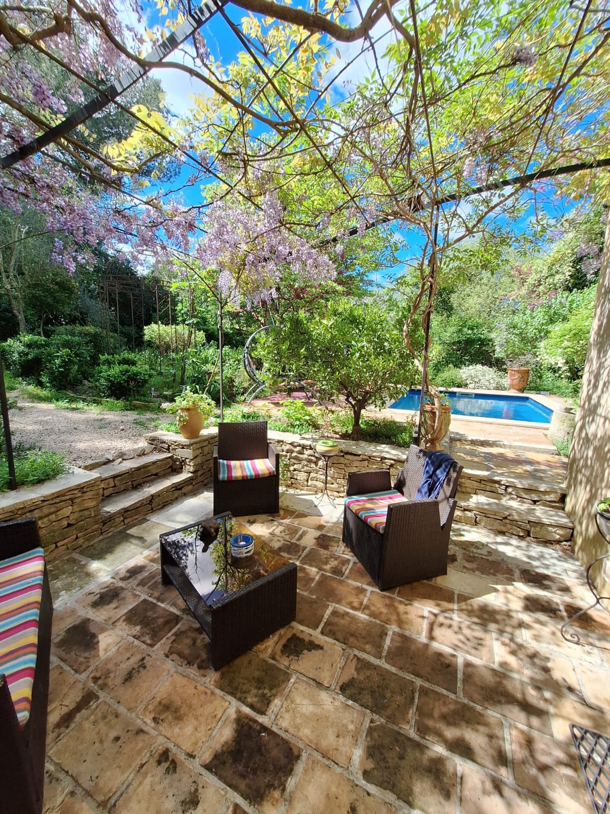 Tämä 50 m²:n kahden huoneen asunto sijaitsee huvilan takaosassa 2 500 m²:n metsäisellä tontilla. Poulx on pieni ja rauhallinen kylä, jossa on kaikki mukavuudet ja joka sijaitsee 15 km Nîmesistä, 18 km Pont du Gardista, 35 km Avignonista ja 16 km Uzesista. Lastensänky pyynnöstä. Muista kertoa siitä.