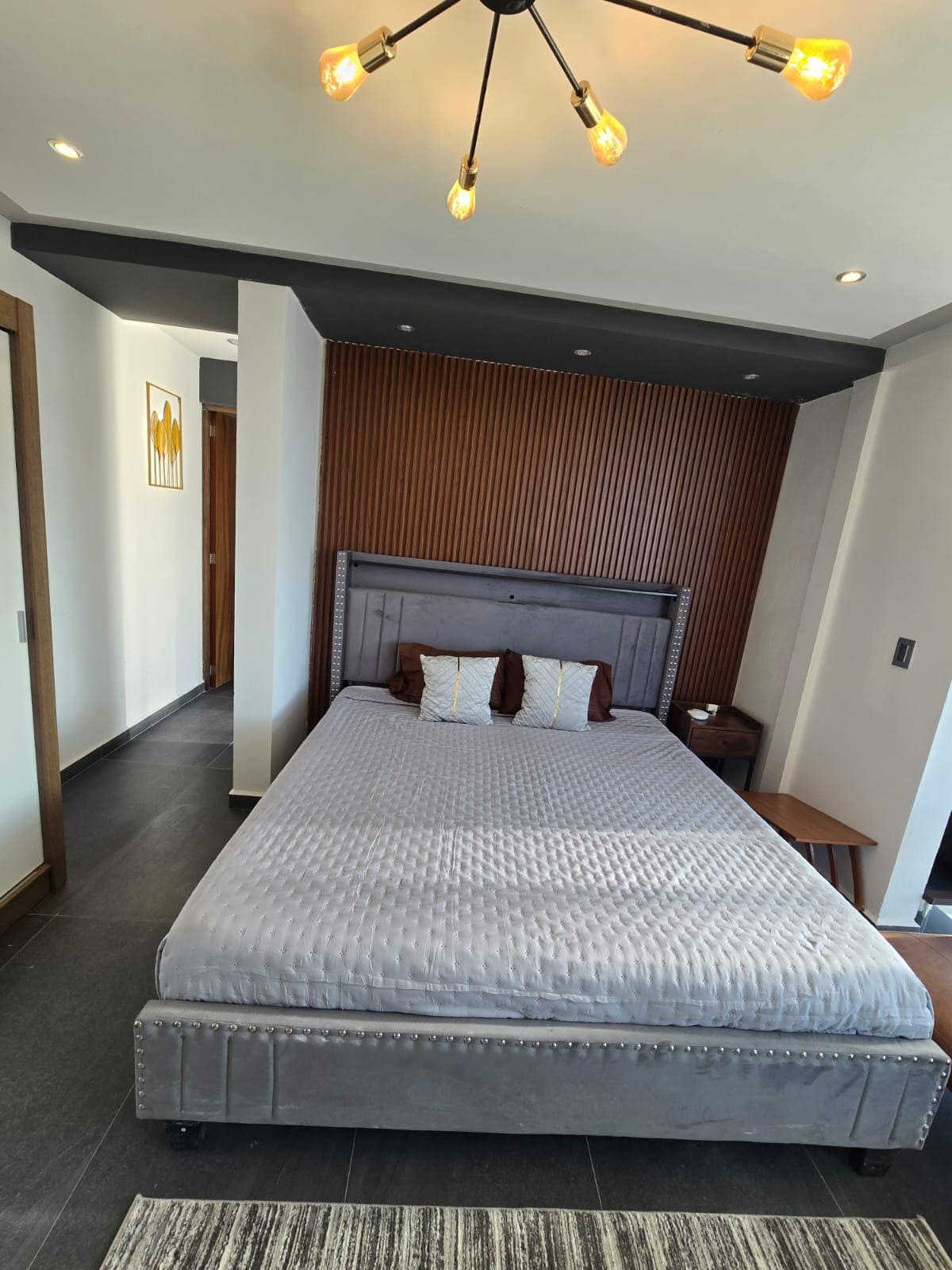 Hermoso Departamento con amplia terraza, limpio y muy acogedor. la construcción es nueva, así como los muebles que hay en su interior. el departamento es de concepto abierto, solo hay un biombo que separa el área del dormitorio con la sala, para dar un poco de privacidad. Hay un sofá cama, tamaño matrimonial, en la sala El departamento tiene amplias ventanas que brindan una excelente iluminación. y cuenta con una linda terraza, rodeada de plantas.