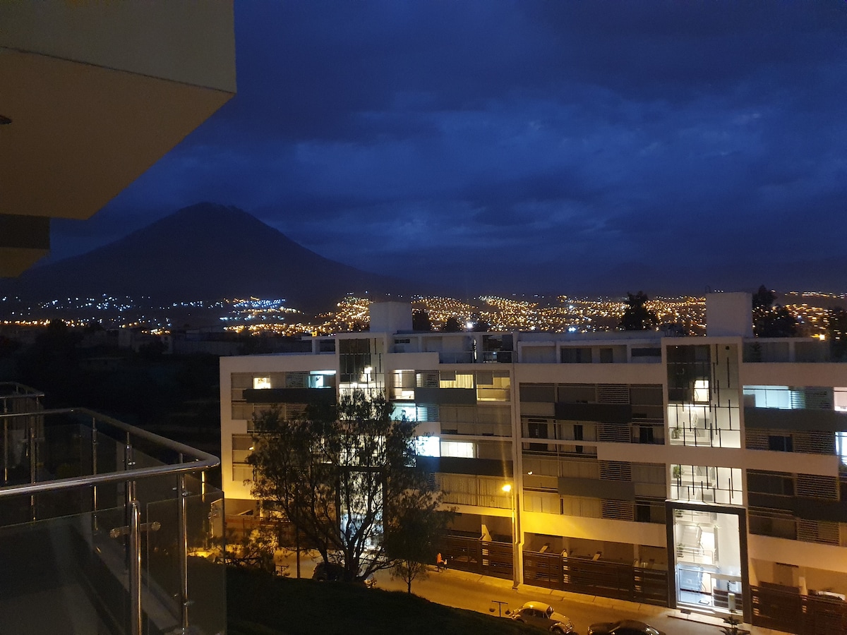 Hermoso departamento para una estadía increíble en Arequipa, equipado con todo lo necesario. Todo de estreno! Con terraza que te da una hermosa vista al Misti, y zonas residenciales de Cayma. A solo 12 minutos del Centro de Arequipa. Ubicado en plena avenida Aviación, todo está cerca (Transporte, Centros comerciales, etc) y con todas las comodidades necesarias. Buena seguridad y con cochera incluída. Una buena opción para disfrutar de la ciudad de Arequipa.