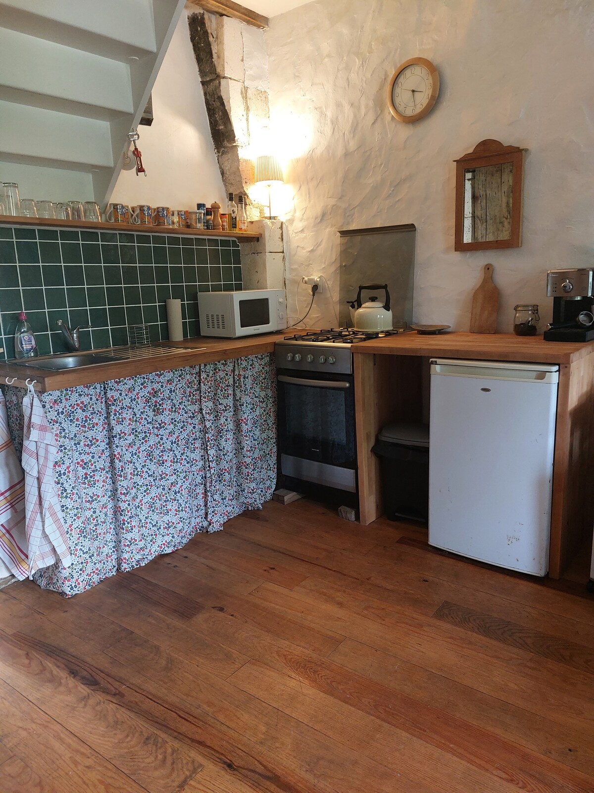Kaunis vesimyllyssä sijaitseva mökki on ihanteellinen pariskunnille, mutta siellä voi majoittua myös enintään 4 hengen perhe. Mökissä on täysin varusteltu keittokomero, ja kesäkuukausina voit käyttää uima-allasta. Talvikuukausina meillä on pelletti-uuni pääasiallisessa olohuoneessa ja patteri yläkerran makuuhuoneessa. Kylpyhuoneessa on lämmitettävä pyykkiteline.