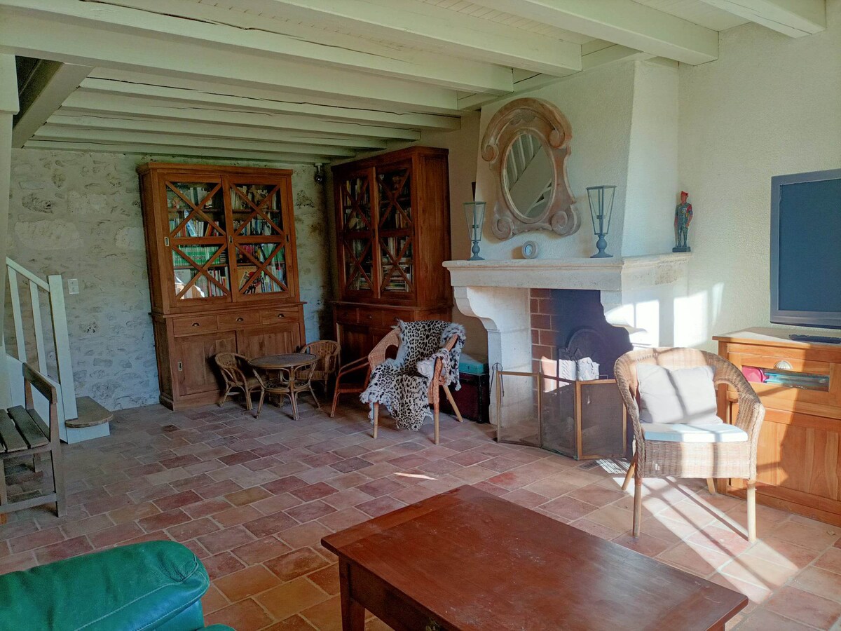 Pretty little cottage, fully equipped, heating included, sharing our tennis court, pool, 'pitch & chip' golf, set in our 20 acre garden of undulating grass and wild flower filled meadows, edged by copses where nightingales nest every year and sing all night long. Heinä-/elokuussa tarjoamme 2 aamiaista ja 4 ruokalajin ruokalistan (joskus pakastimessa), jossa on karahvi viiniä jokaiselta 7 varatulta yöltä [Ei velvoitetta]. Maalaiskävelyt, upea paikallinen kylä, Grand Brassac. Kodikas, maalaistyylinen, rauhallinen, 360 asteen näköala.