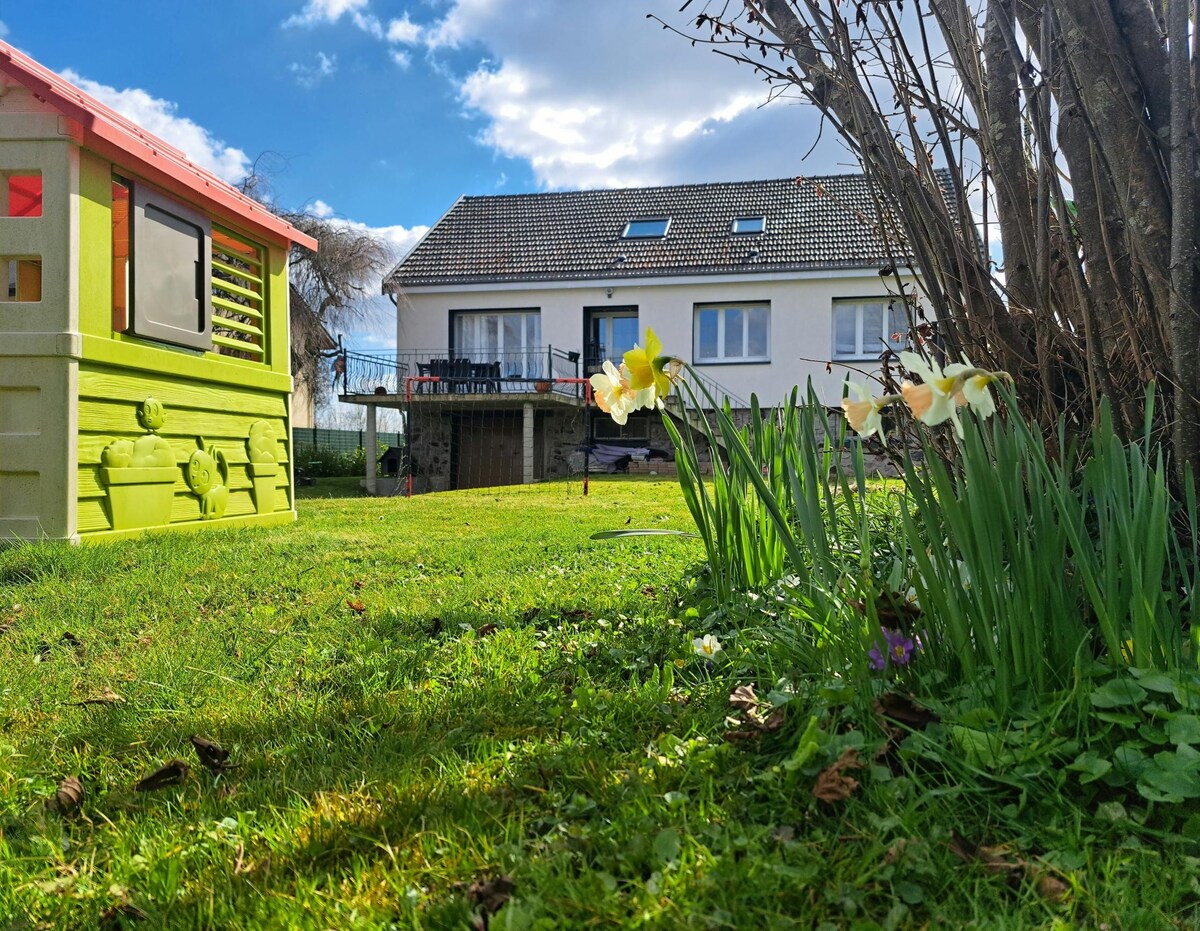Suuri perheasunto, jossa on puutarha, uima-allas ja leikkipaikka