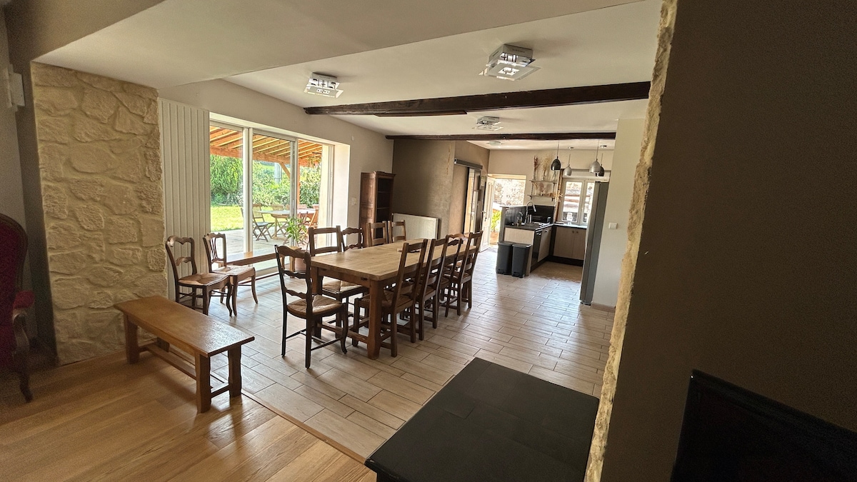 Suuri talo, uima-allas, kylpylä ja puutarha lähellä Lyonia