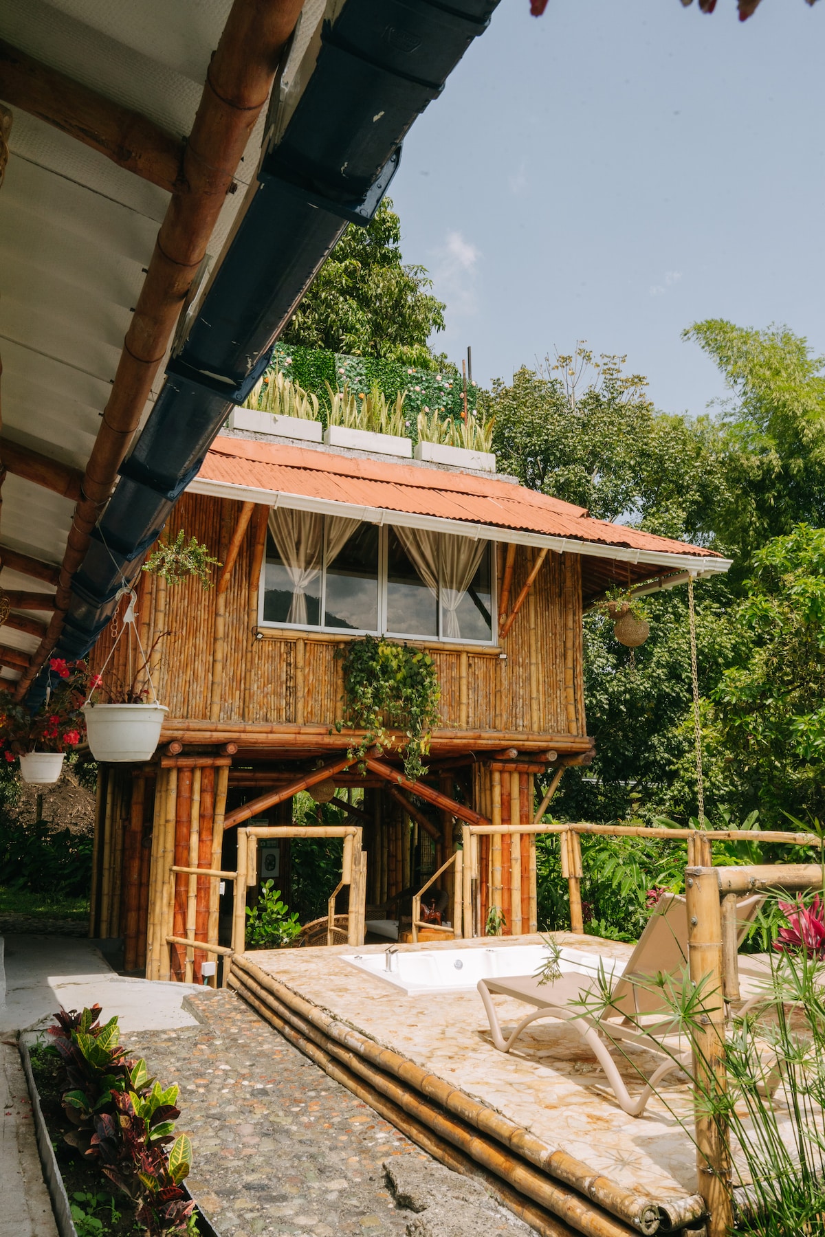 guadua-mökki vuorten välissä