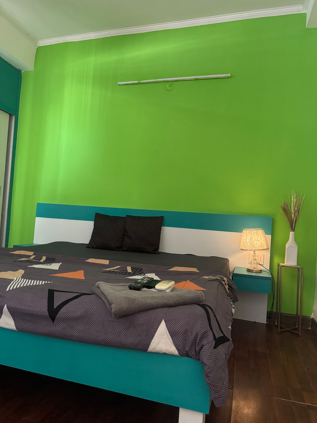 Etelä-Delhin sydämessä sijaitseva @GK 1we toivottaa sinut tervetulleeksi nöyrään kotiimme. Tämä pieni tila on suunniteltu studiomuotoon niille, jotka rakastavat tilaa ja yksityisyyttä, ja siellä on kaikki tarvitsemasi lyhyisiin ja pitkiin majoittumisiin. Siinä on pieni mutta hyvin varustettu keittiö ja kylpyhuone. Vuoden 2025 uusi Panasonic Split -ilmastointilaite Tärkeä huomioitava asia on sisäänkäynti, joka on kierreportaiden kautta talomme takapuolelta, joka on erittäin keskeisellä paikalla, ja lähellä on juoksupuisto ja koirapuisto