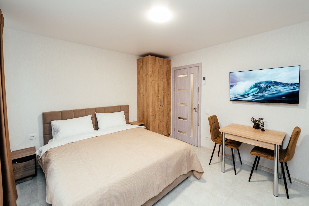 Viihtyisä ja valoisa huoneisto kaupungin keskustassa 3. kerroksessa 5. kerroksesta, josta on kaunis näkymä viehättävälle bulevardille. Juuri remontoitu. Kymmenen minuutin kävelymatka katedraaliin, keskuspuistoon ja sirkukseen, bussipysäkki on lähellä. Monet kahvilat ja ravintolat. Huoneistossa on mukava makuuhuone, jossa on suuri ja mukava vuode ja puhtaat vuodevaatteet, täysin varustettu keittiö, WiFi, TV, puhtaat pyyhkeet ja hygieniatuotteet. Hiustenkuivain, silitysrauta. Täydellinen matkailijoille ja liikematkailijoille! Ei hissiä